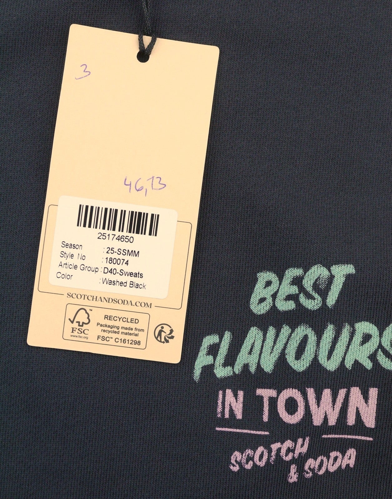 SCOTCH & SODA Men Sweatshirt M Washed Black Cotton Patterned Crew Neck Pull On