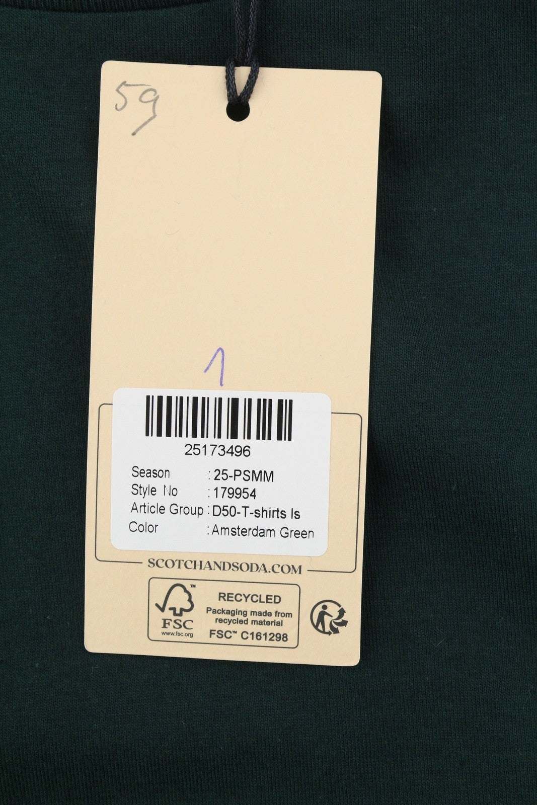 SCOTCH & SODA Men T-Shirt M Dark Green Cotton Crew Neck Long Sleeve Pull On