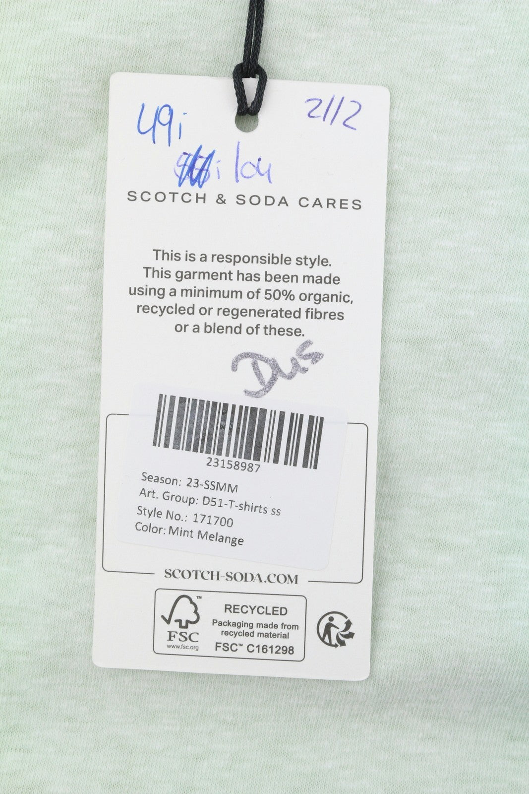 SCOTCH & SODA Men T-Shirt M Mint Green Melange Crew Neck Short Sleeved