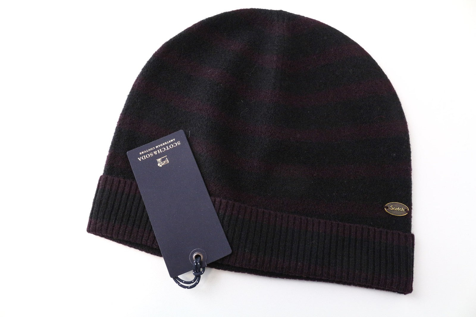 SCOTCH & SODA Men's Hat OS Blue Wool 2-Pack Cuffed Beanies Striped Pattern