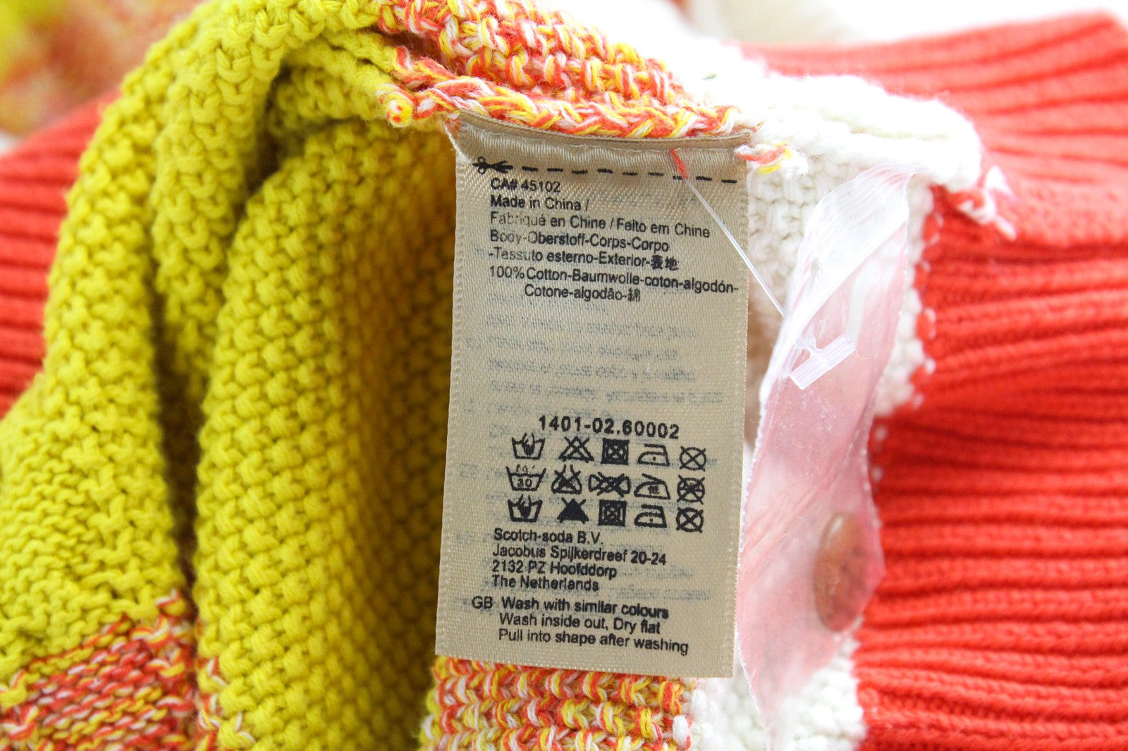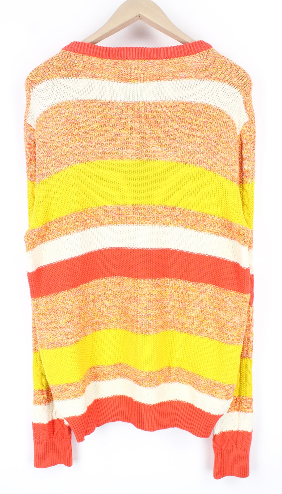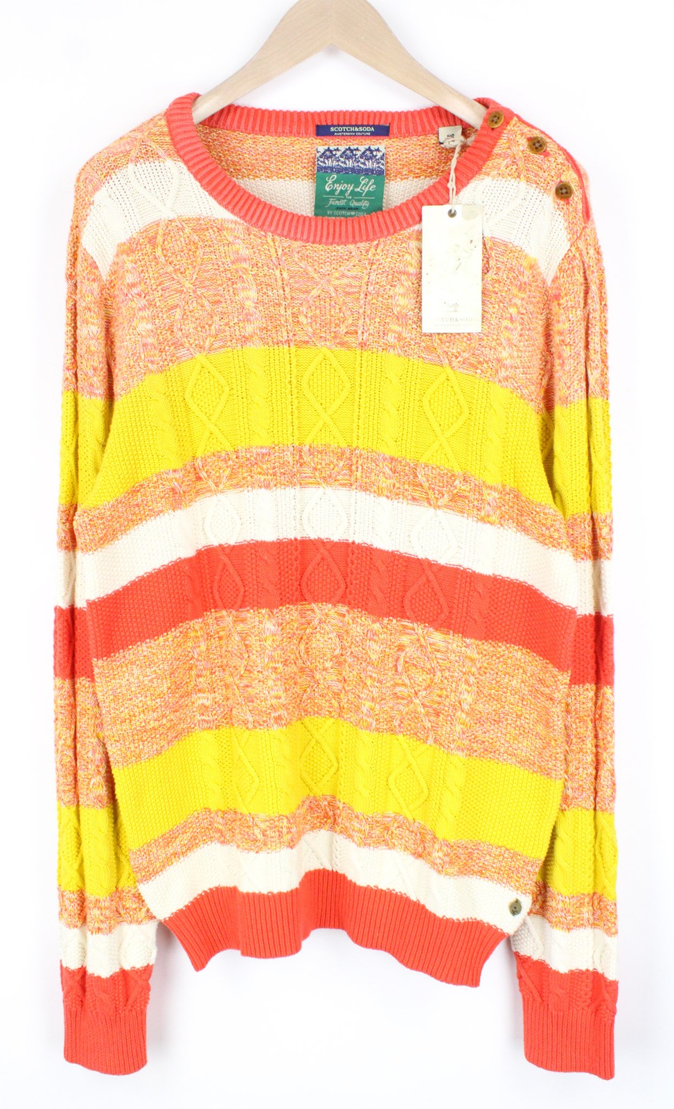SCOTCH & SODA Men's Jumper L Orange Striped Cable Knit Cotton Crewneck Sweater