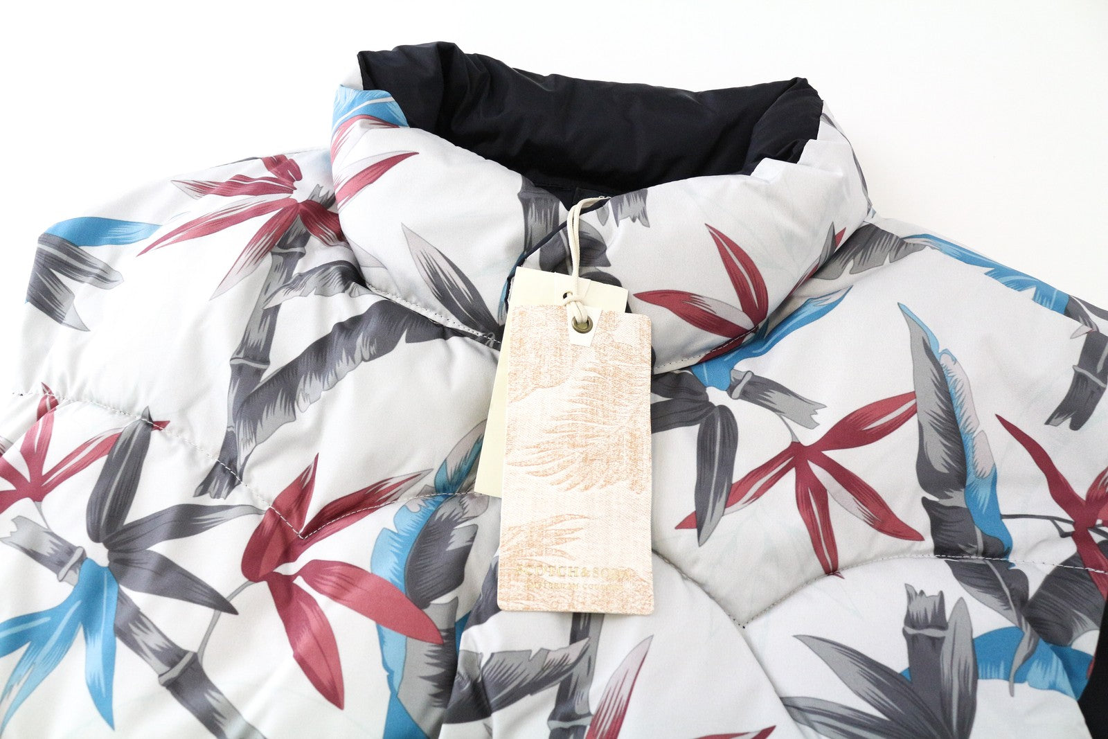 SCOTCH & SODA Men's L Reversible Leaf Print Puffer Vest Snap Closure Short