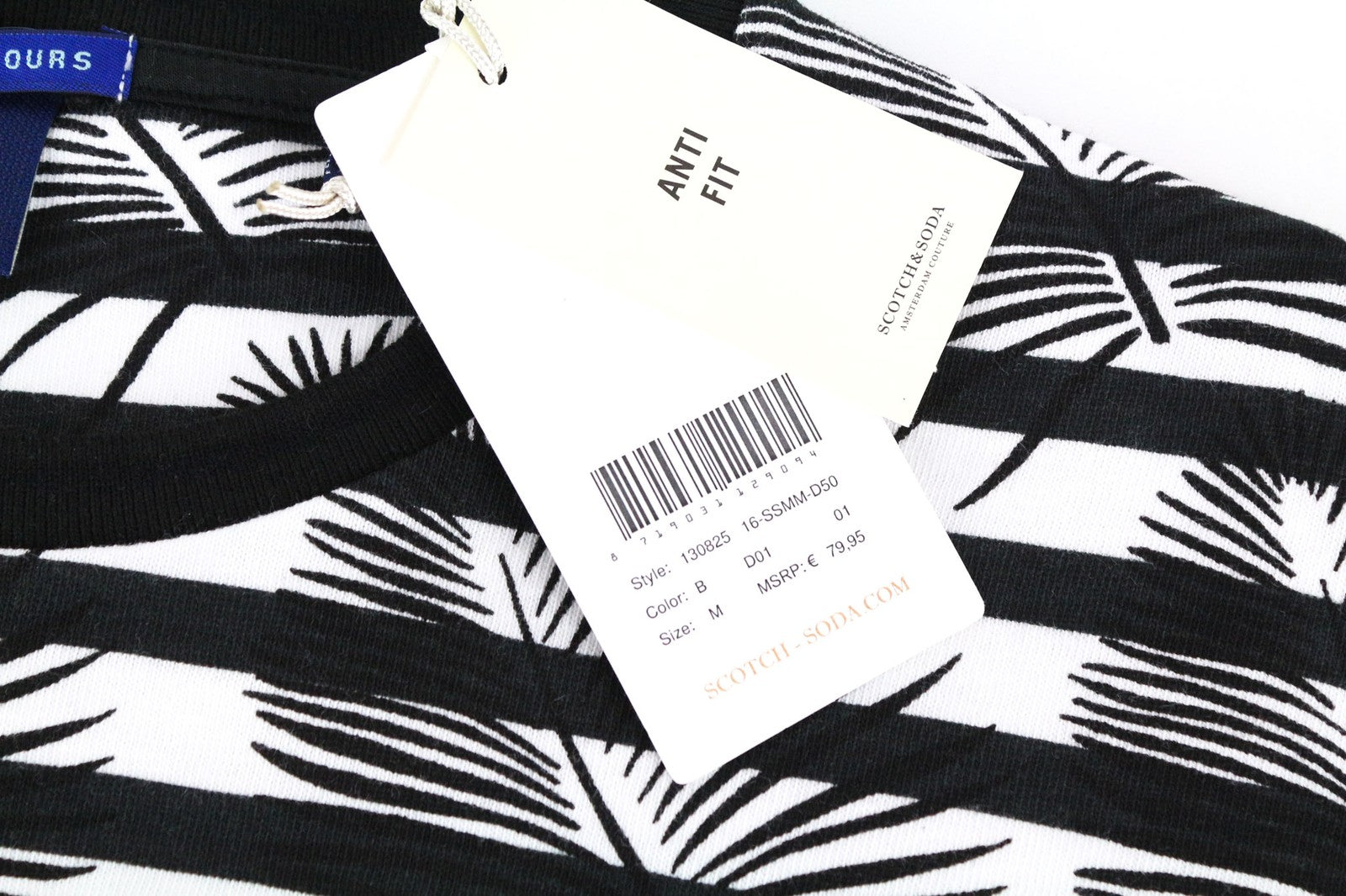 SCOTCH & SODA Men's M Black Striped Crew Neck Pullover with Floral Cotton Print