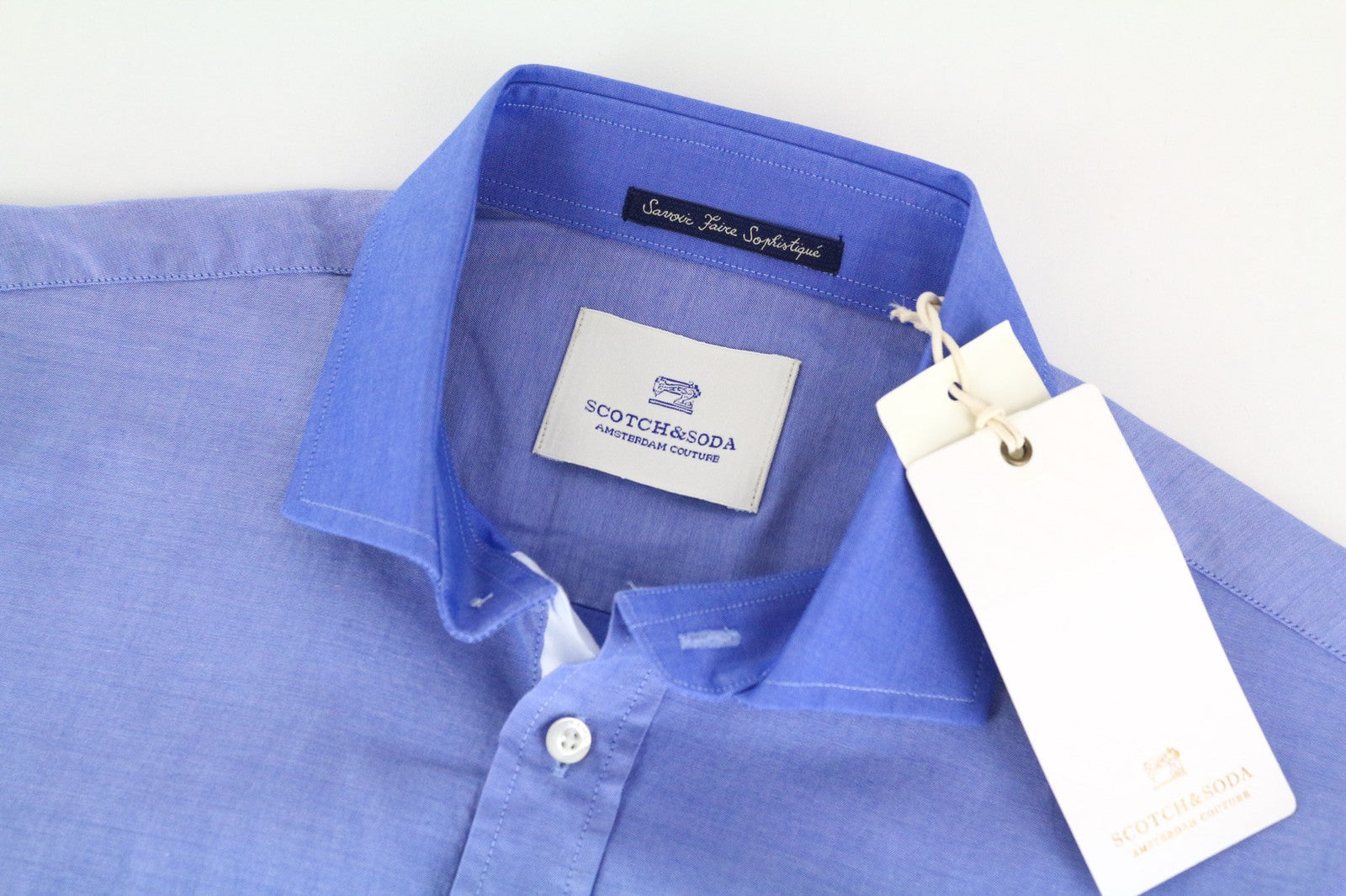 SCOTCH & SODA Men's S Light Blue Slim Fit Melange Pure Cotton Dress Shirt