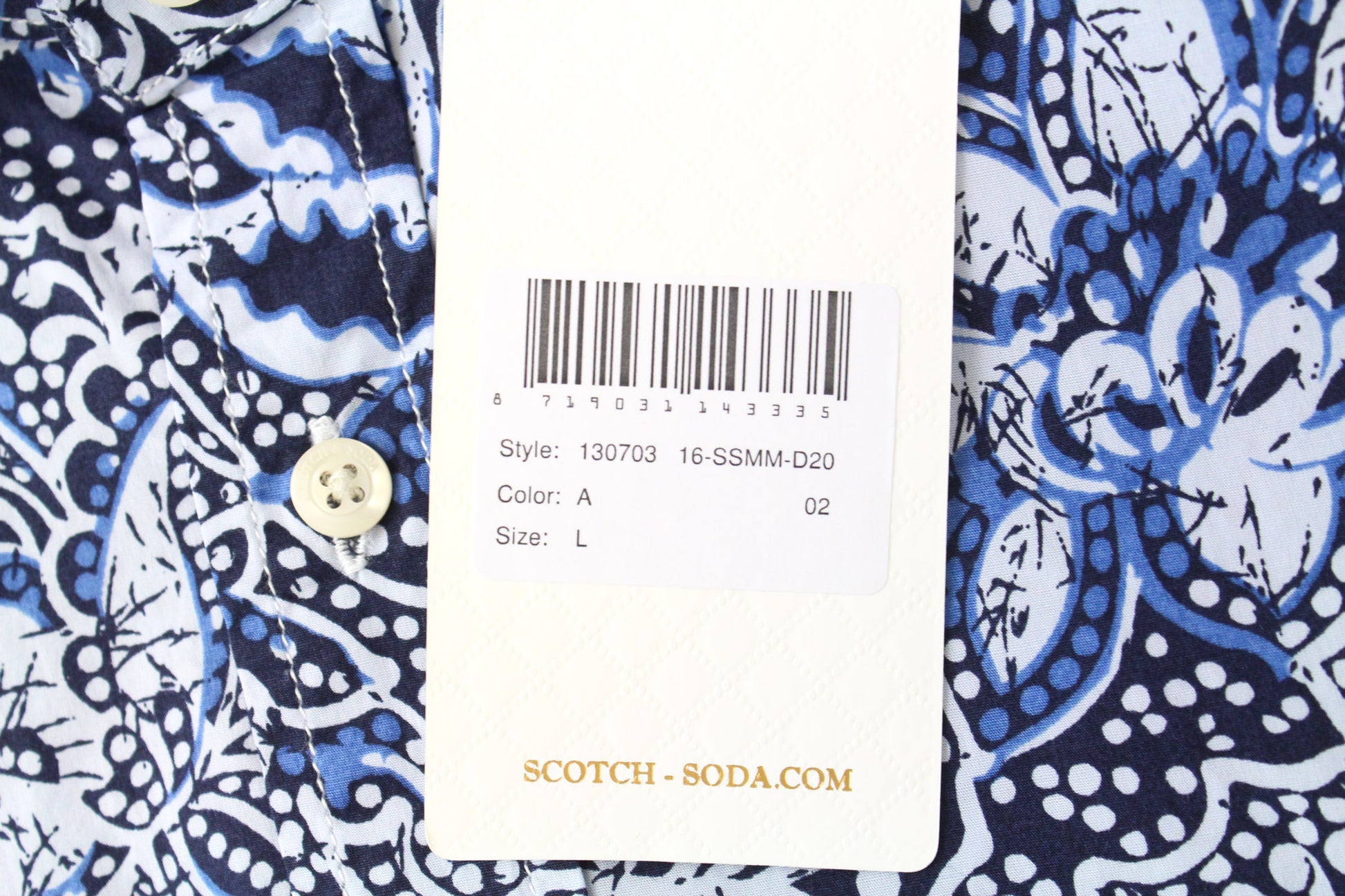 SCOTCH & SODA Men's Shirt L Blue Melange Graphic Cotton Blend Stretch Pattern