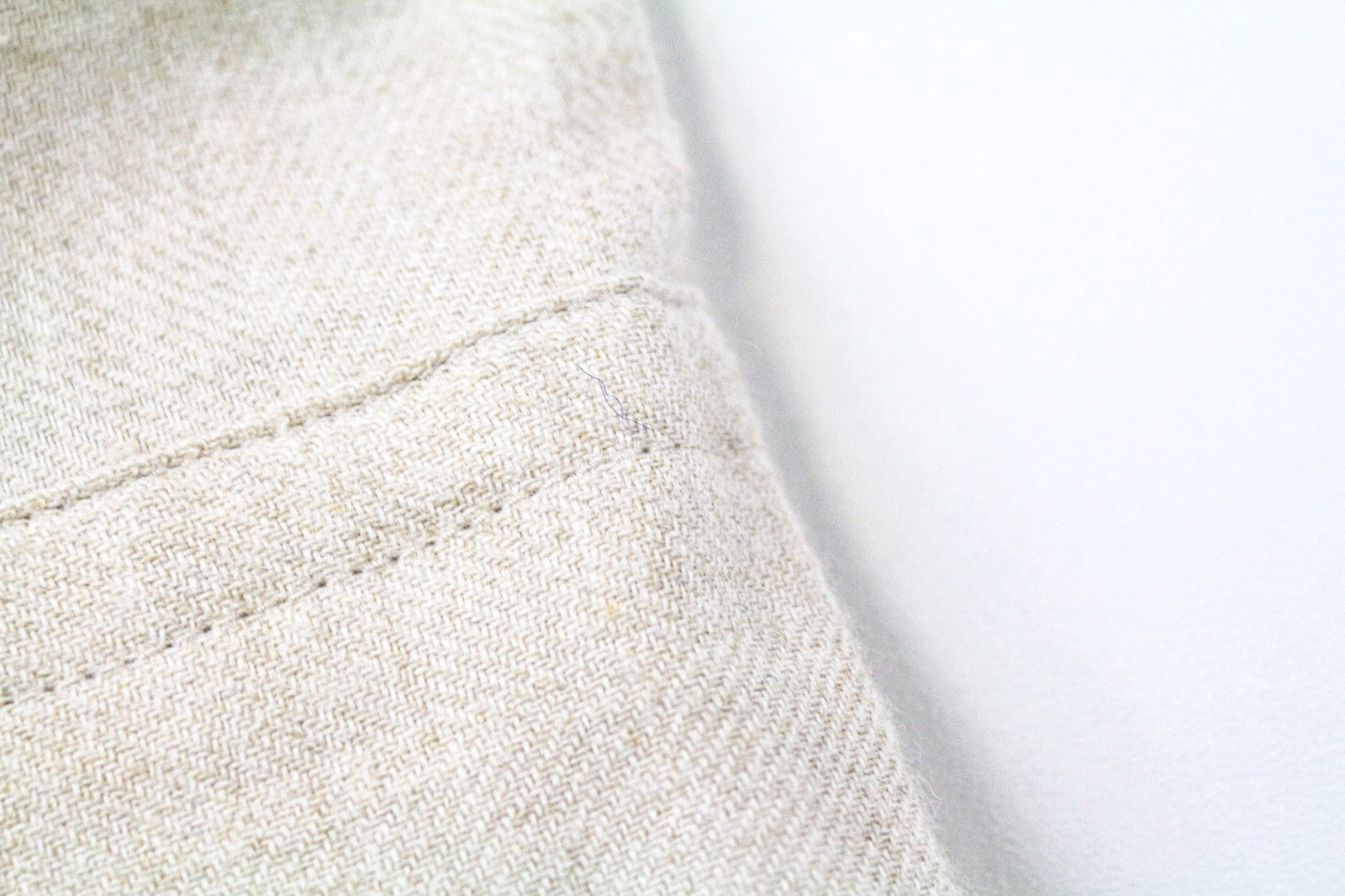 CONDITION: New with defects. No size and care tags. Stained left cuff. Please see added photos.