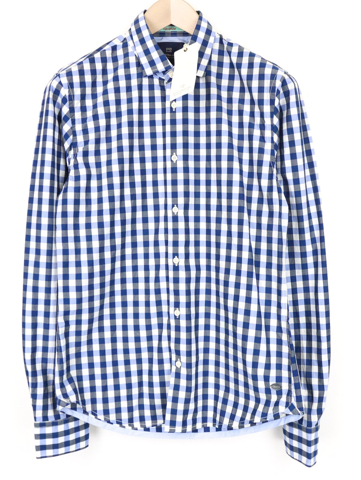 SCOTCH & SODA Men's Shirt S Blue Cotton Classic Gingham Button-Up Long Sleeve