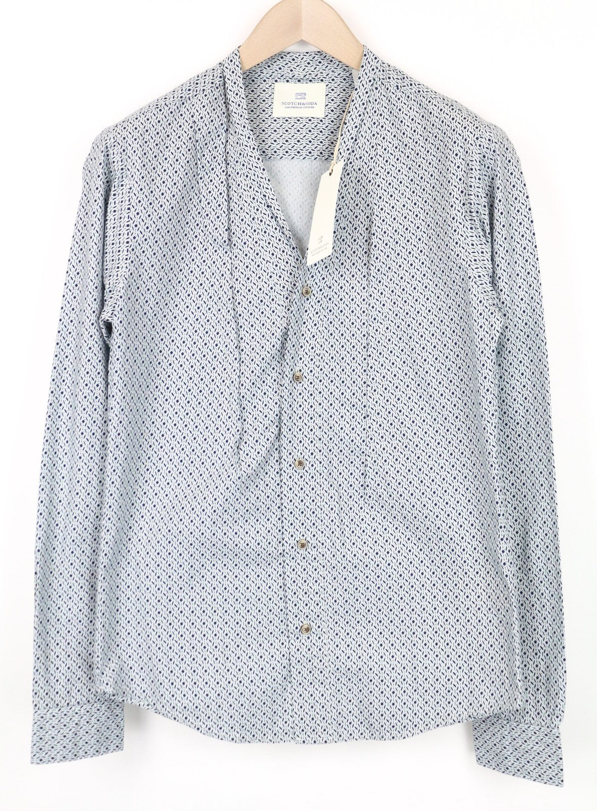 SCOTCH & SODA Men's Shirt S Blue Pure Cotton Poplin Patterned Button-Up Casual