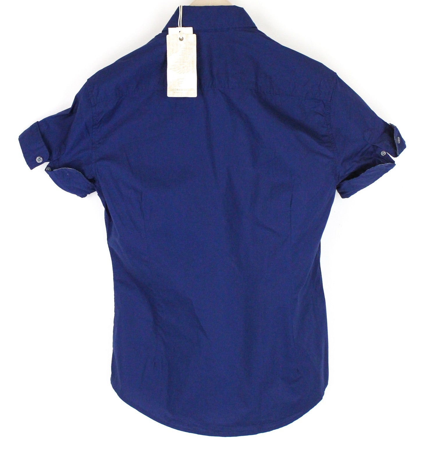 SCOTCH & SODA Men's Shirt S Blue Slim Short Sleeve Cotton Button-Up