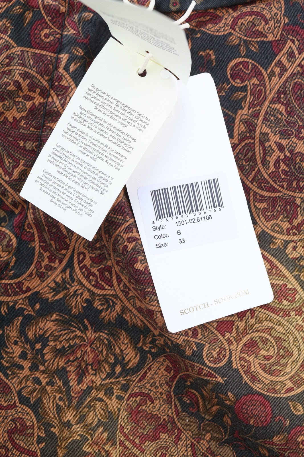 SCOTCH & SODA Men's Shorts W33 Chino Brown Paisley Pattern Zip Fly Casual