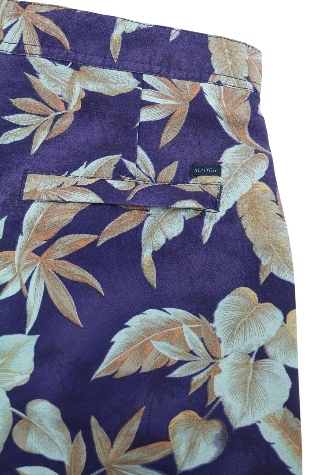 SCOTCH & SODA Men's Swimwear S Blue Leaf Pattern Mesh Inner Drawstring Waist