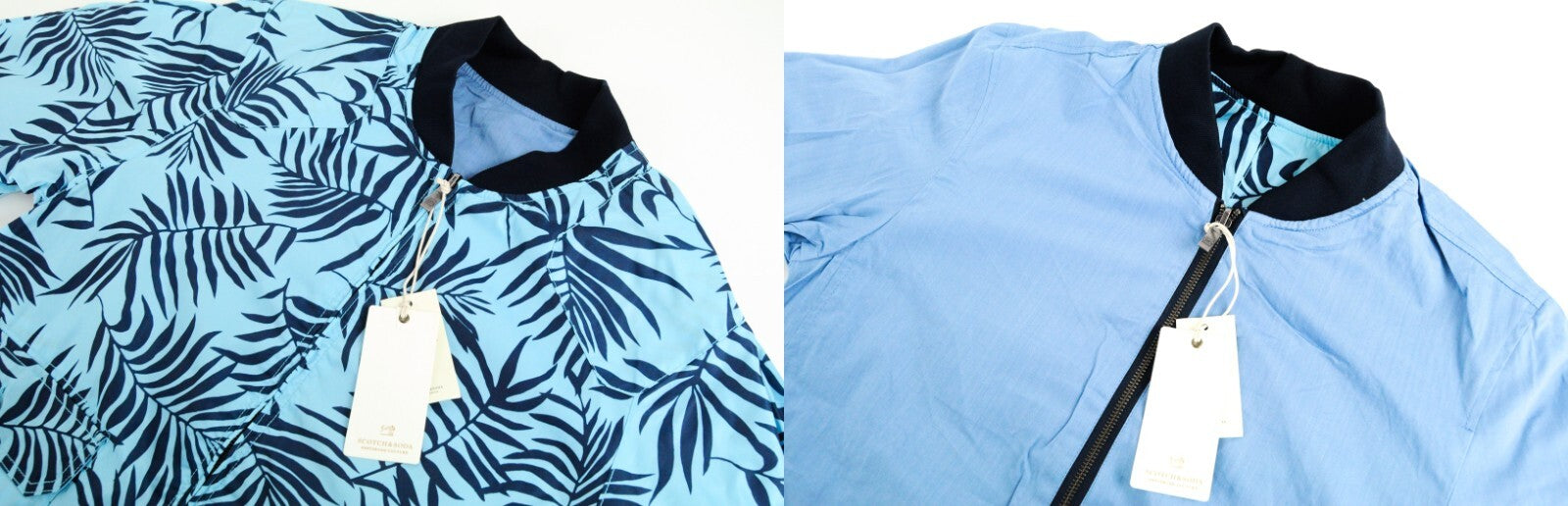 SCOTCH & SODA Reversible Jacket L Blue Cotton Linen Pattern Zip Men's Coat