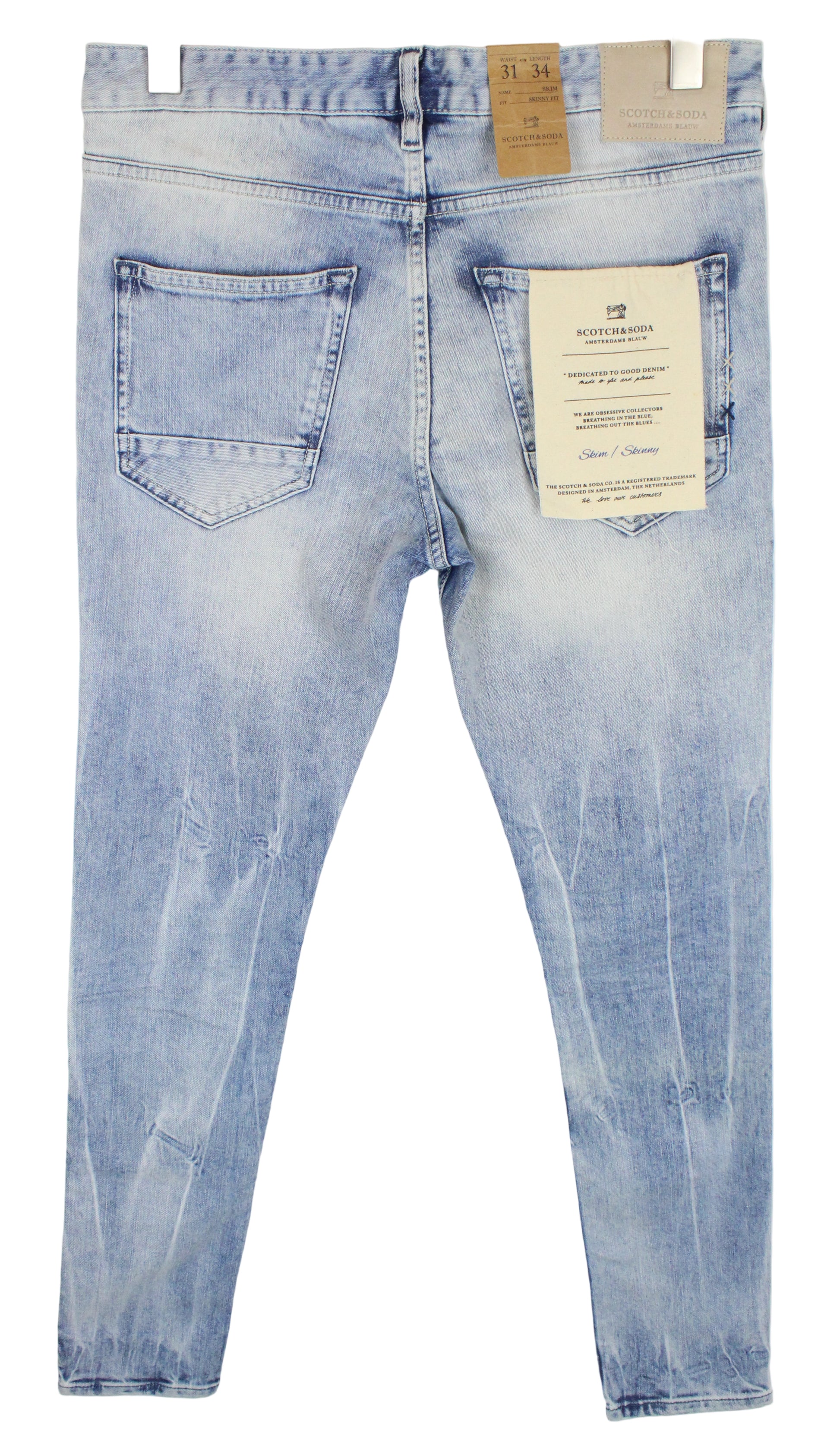 SCOTCH & SODA Skim Men's W31/L34 Blue Cotton Stretch Skinny Fit 5-Pocket Jeans