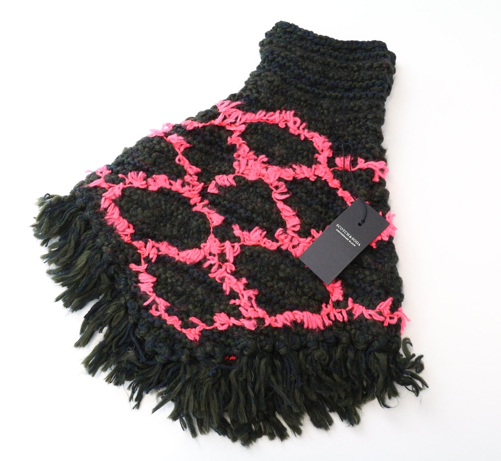 SCOTCH & SODA Women's Scarf OS Green Unisex Snood Chunky Tassels Patterned