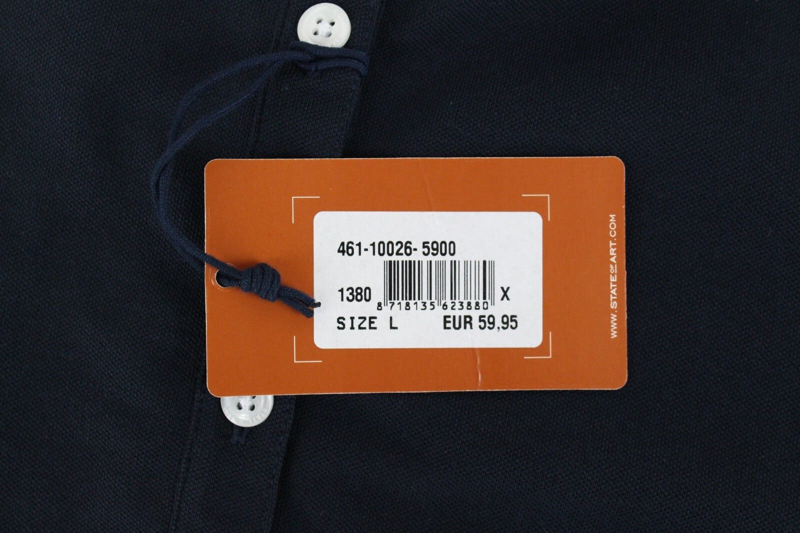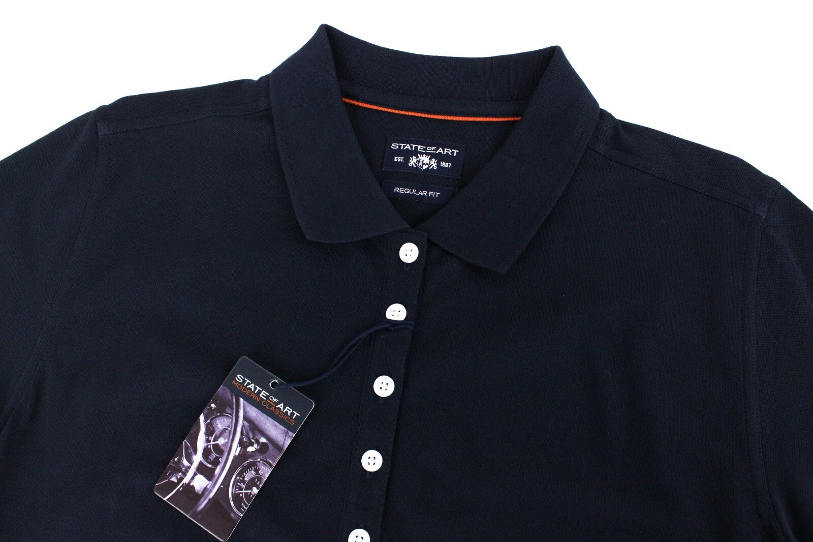 STATE OF ART Mens Polo T-Shirt L Embroidered Navy Cotton Short Sleeve Dress