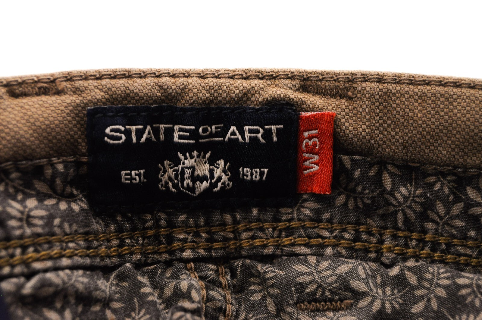 STATE OF ART Mens Trousers W31/L34 Brown Dress Regular Tapered Stretchy Monza