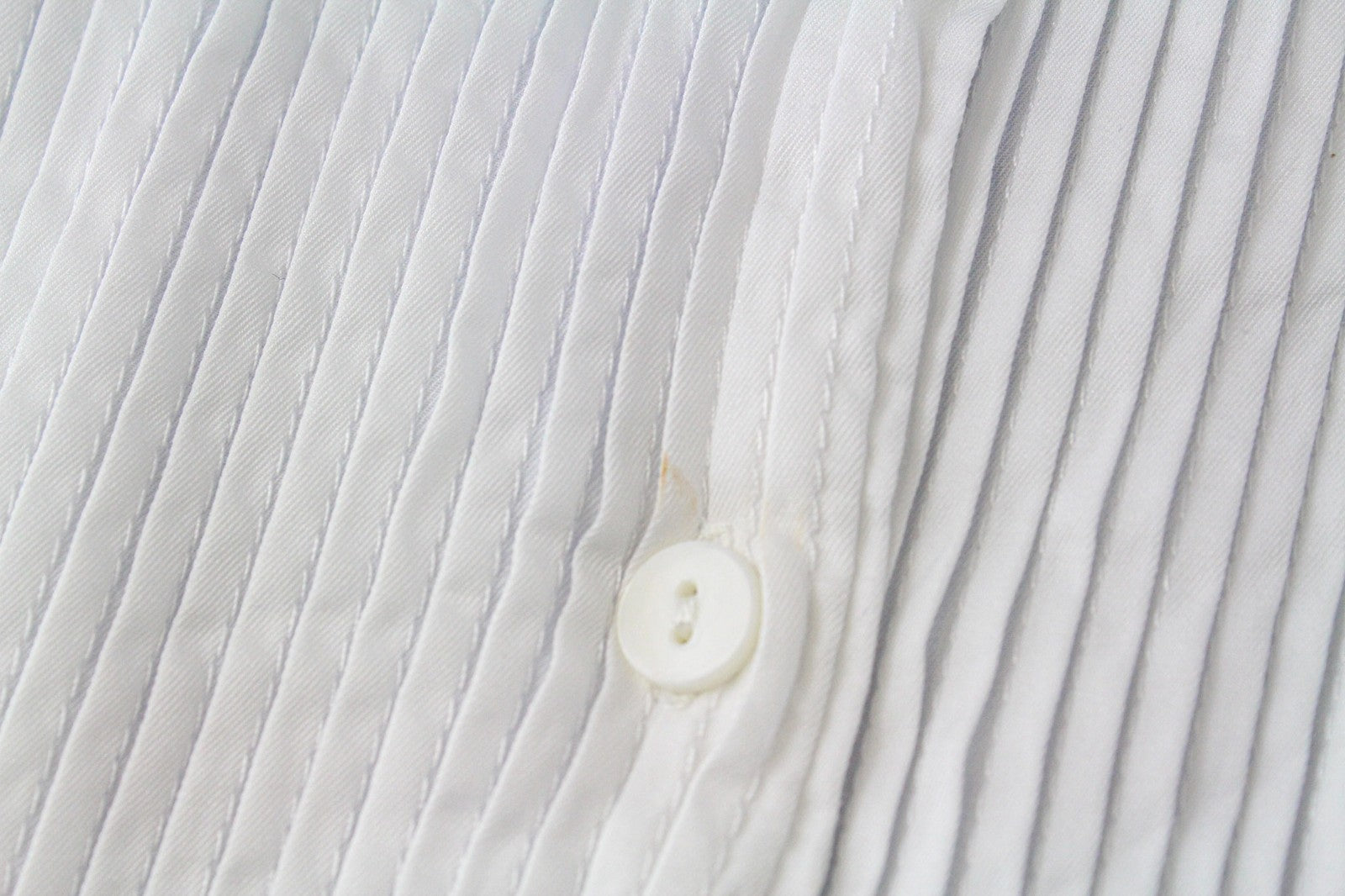 SUISTUDIO Ame Women's Shirt UK10 Light Blue Slim Pleated Bib Tunic Henley Style