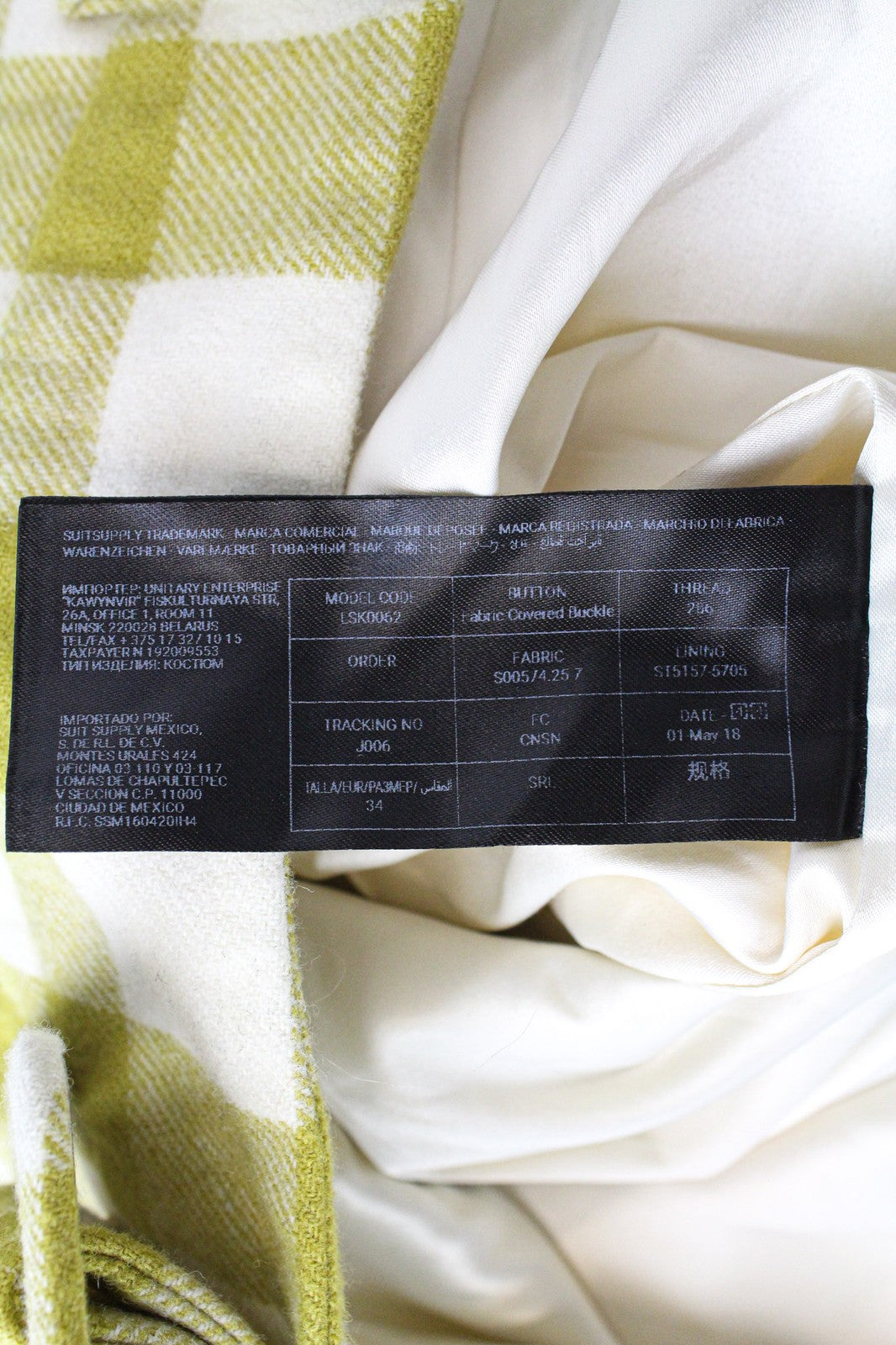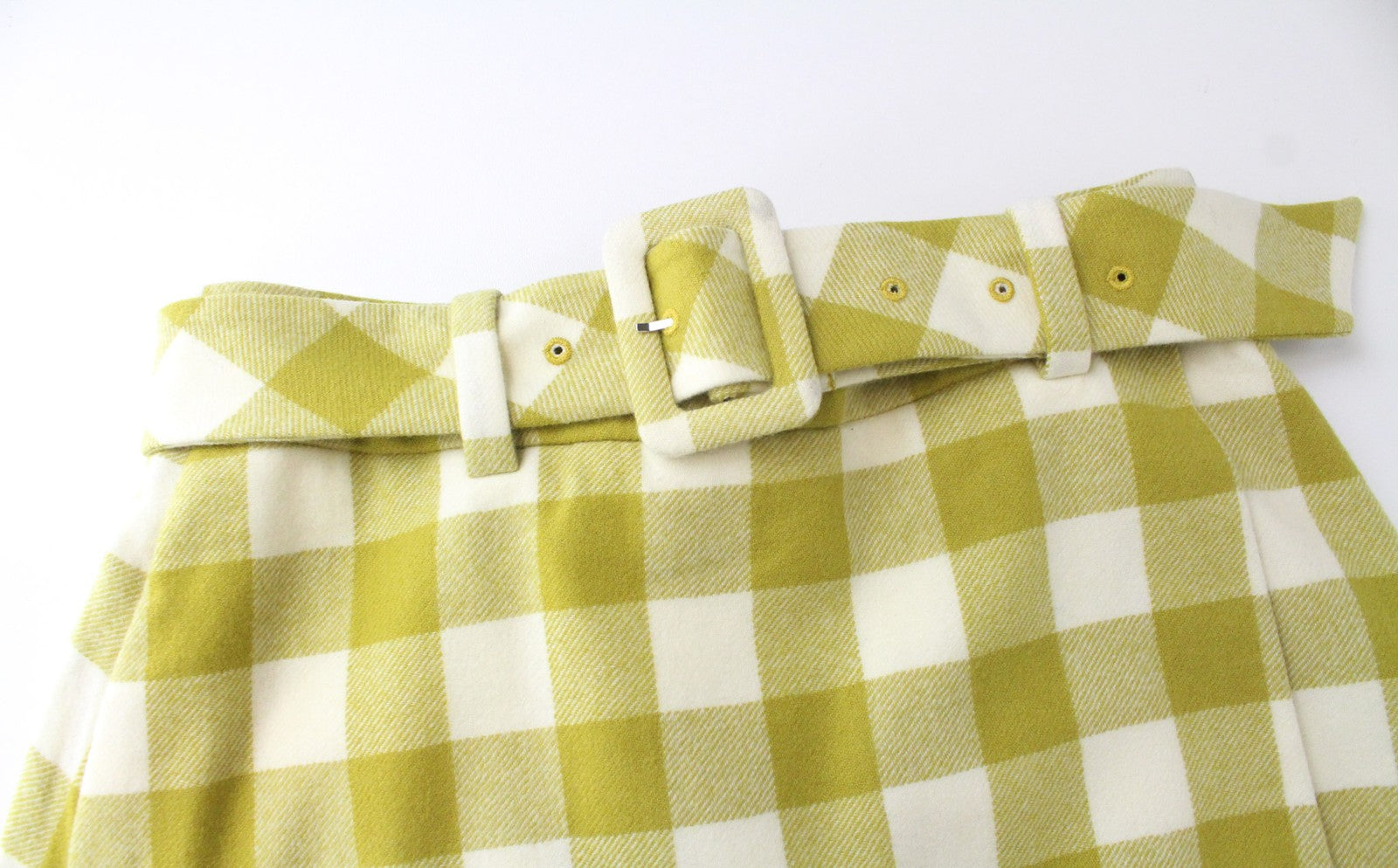 SUISTUDIO Calvin Women's Skirt UK8 Green Checked Pure Wool Lined Belted Mini