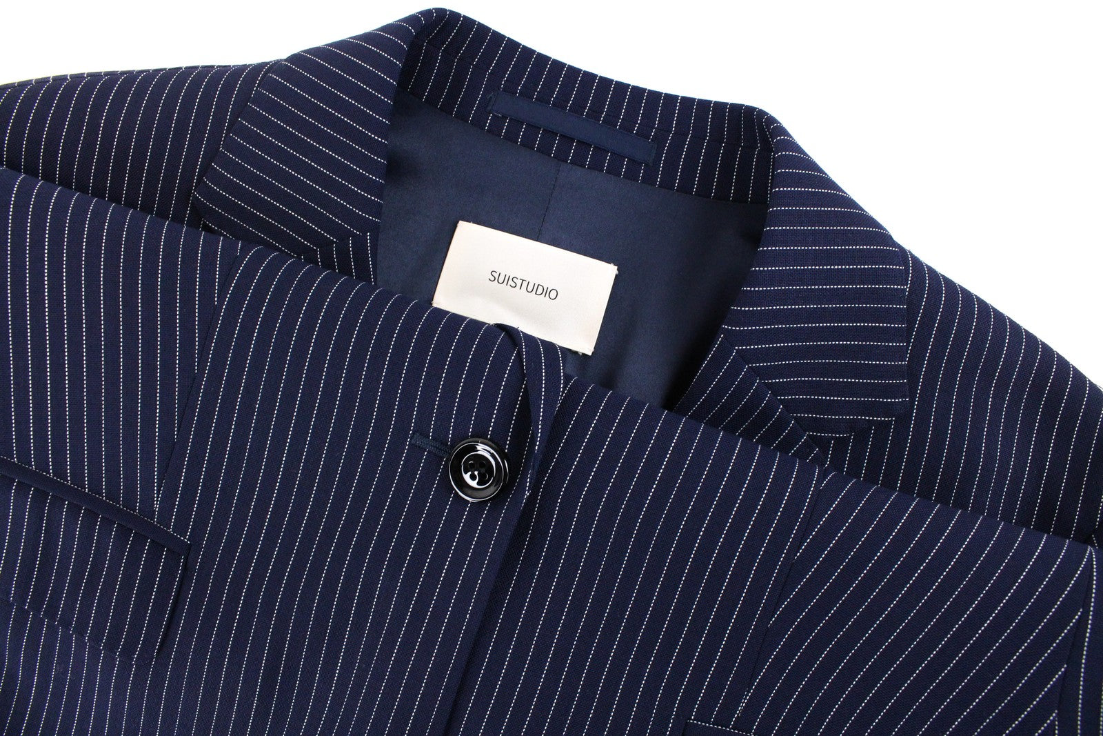SUISTUDIO Cameron Womens Blazer UK14S Blue Striped Wool Single-Breasted