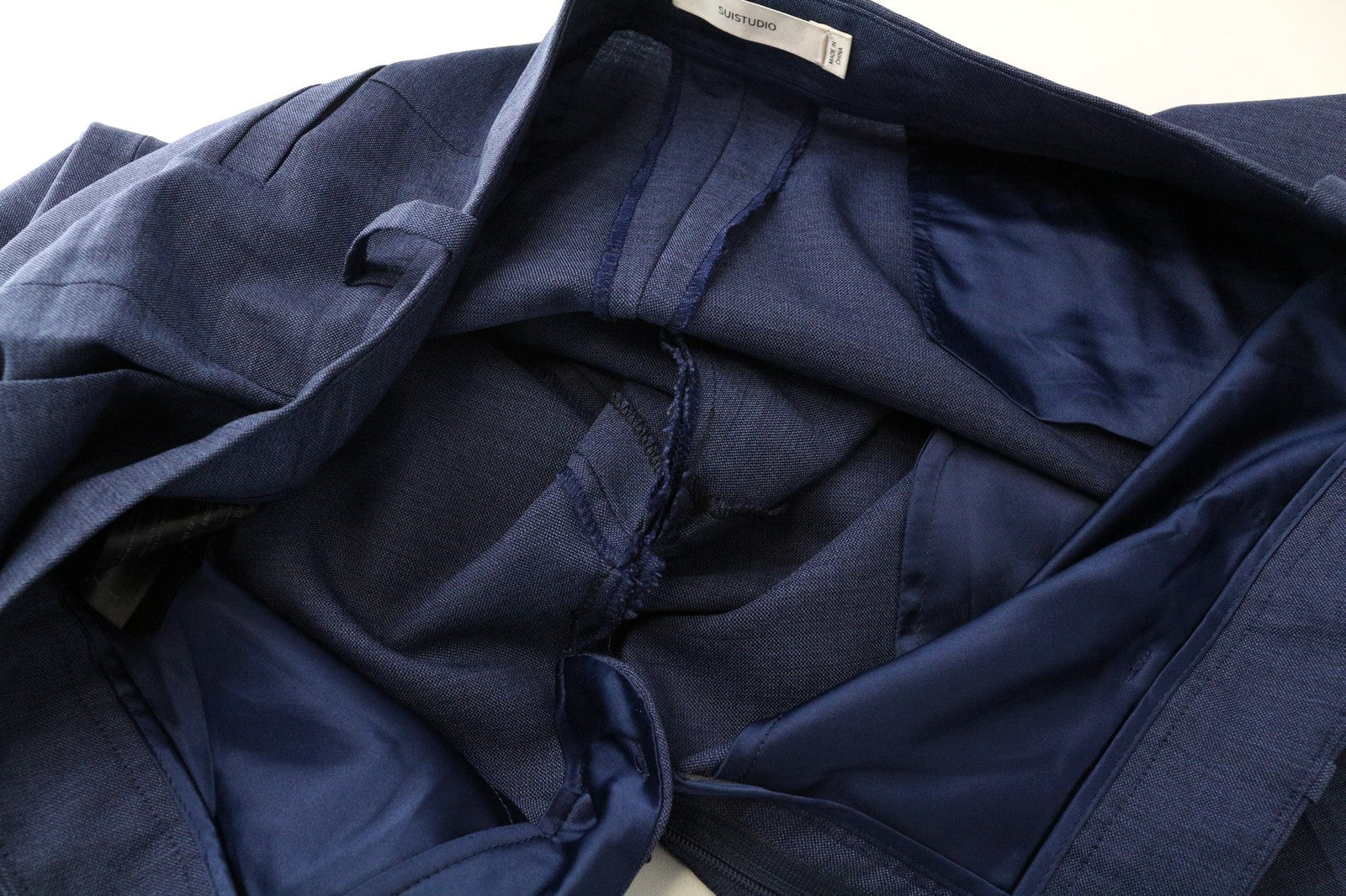 SUISTUDIO Grey Women's Trousers UK14S Blue Slim Melange Pure Wool Flat Front