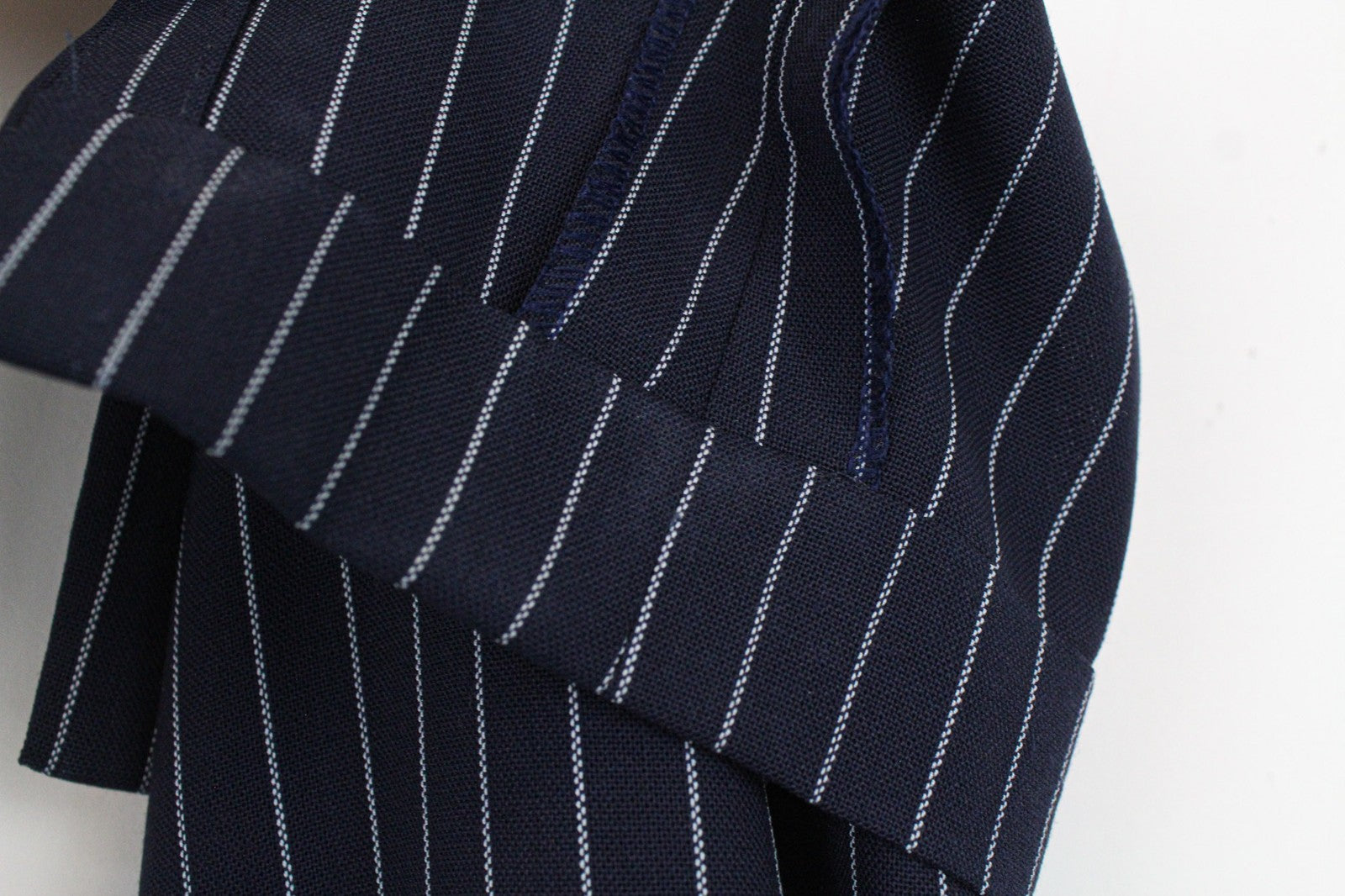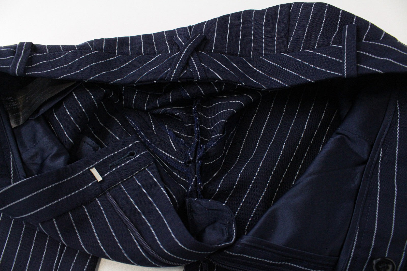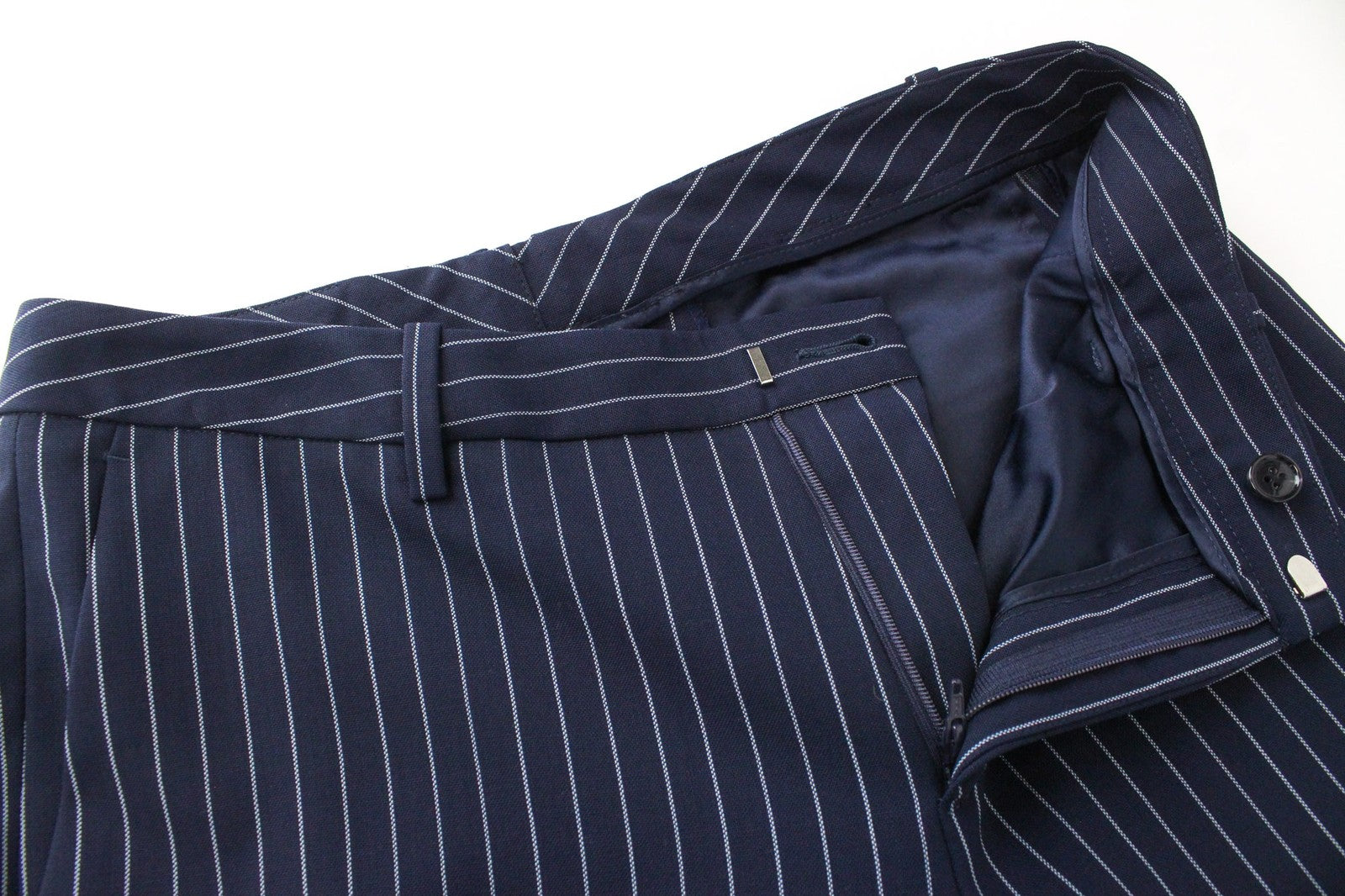 SUISTUDIO Oakley Women's Pants UK12S Navy Striped Pure Wool Pleated Trousers