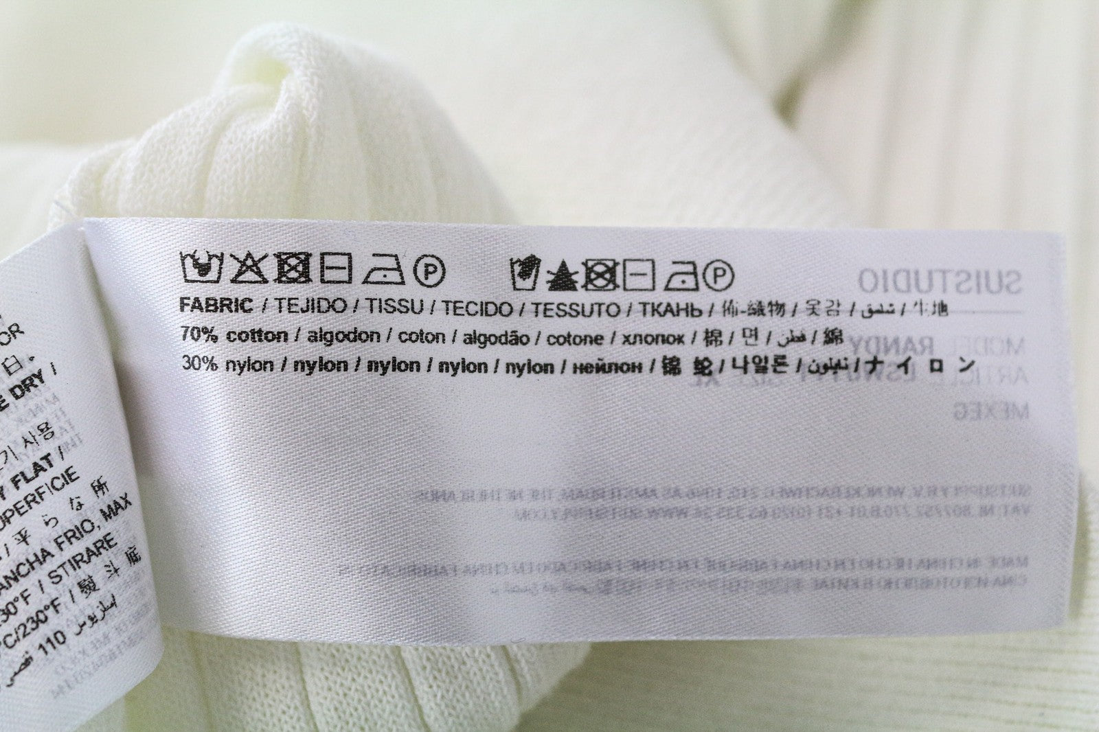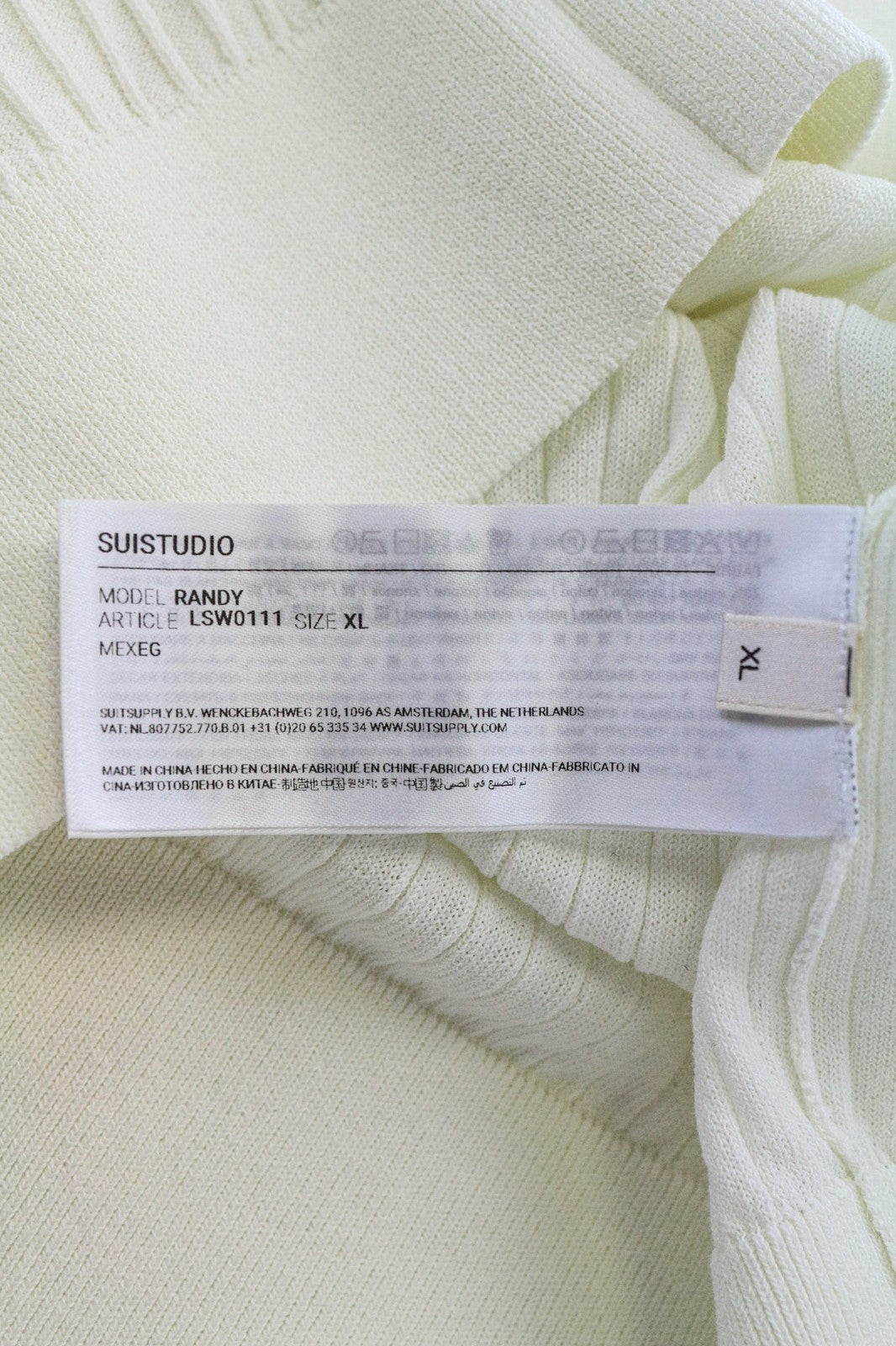 SUISTUDIO Randy Women's Tee XL Off-White Rib Knit Slim Cotton Crew Neck