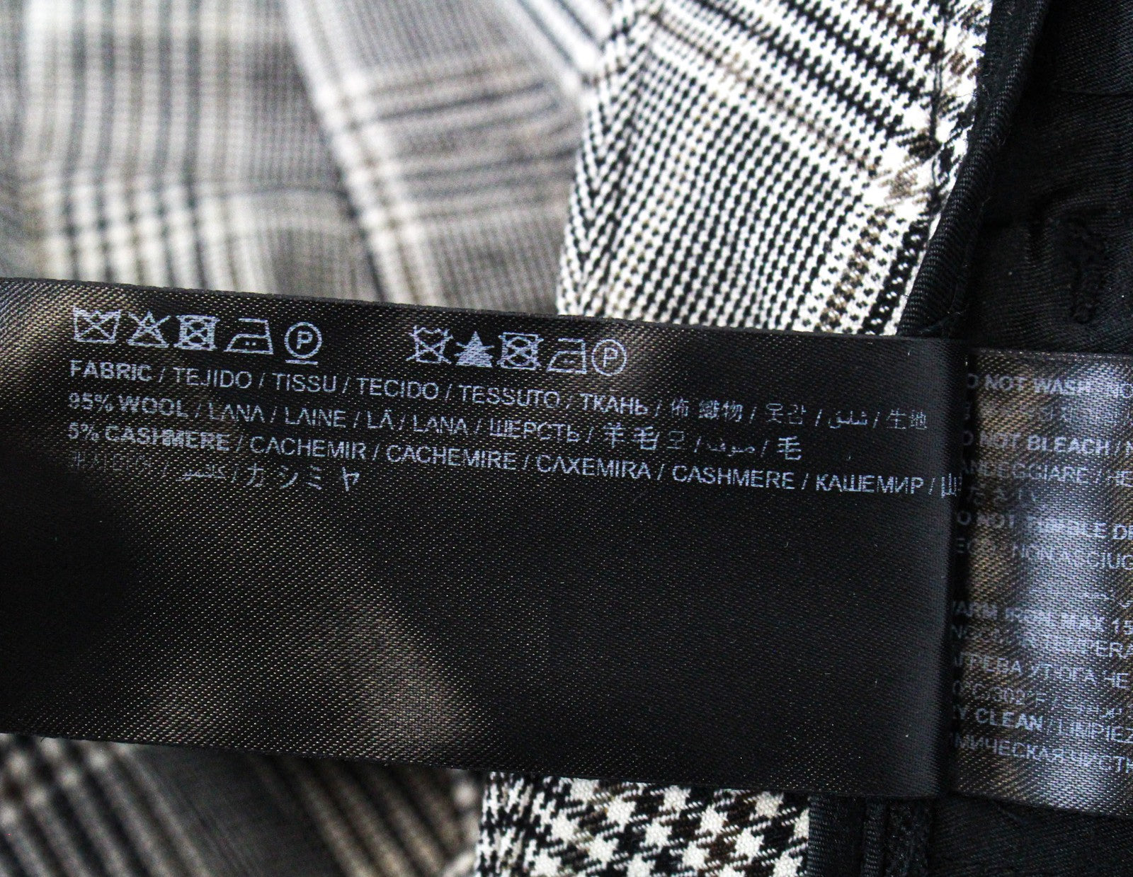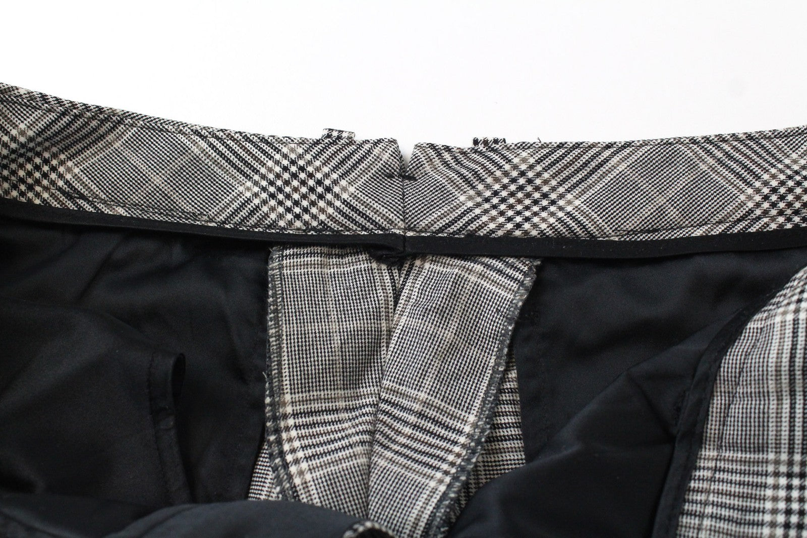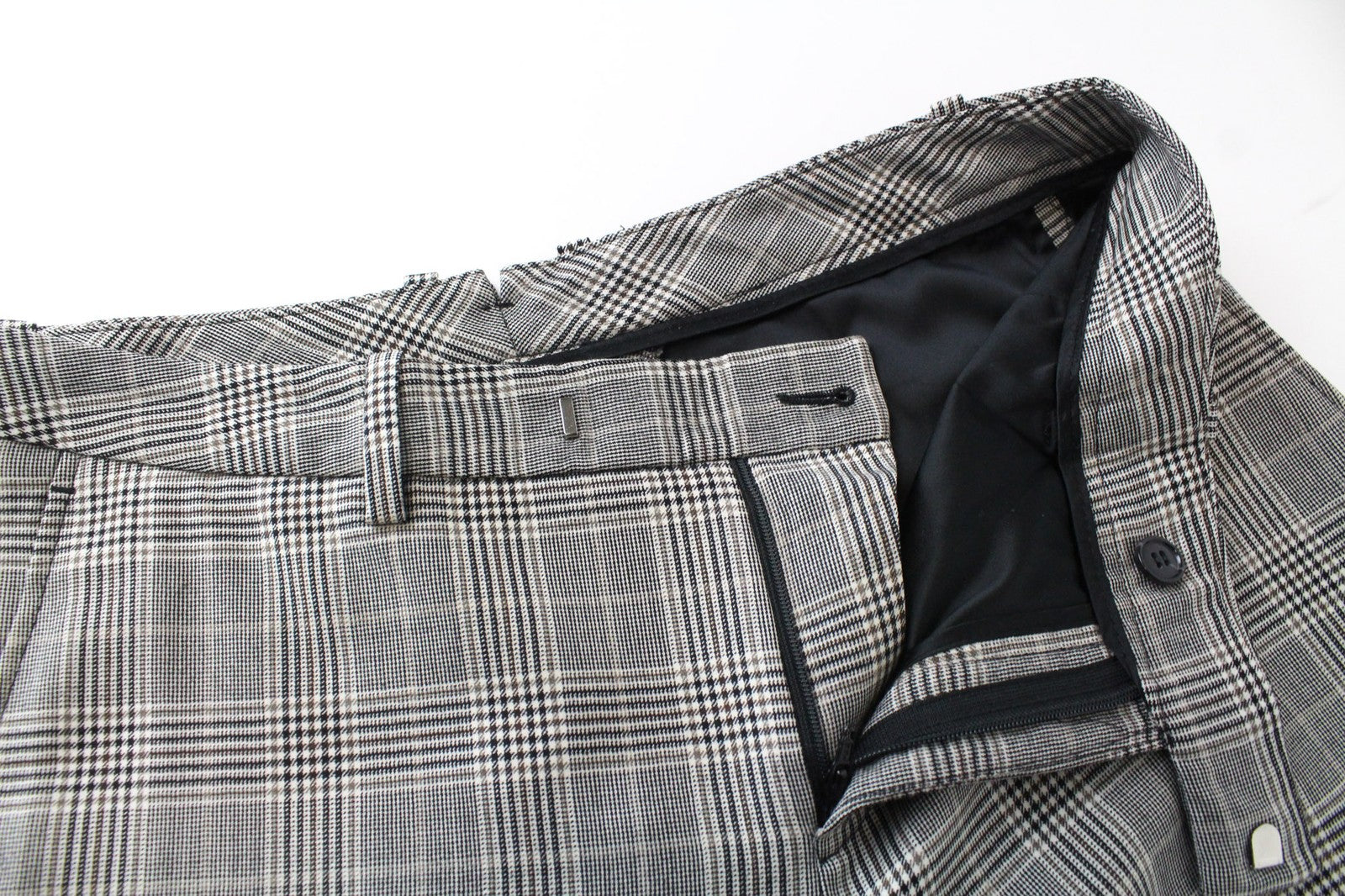 SUISTUDIO Robin Women Trousers UK12S Beige Wool Cashmere Glen Plaid Slim Cut