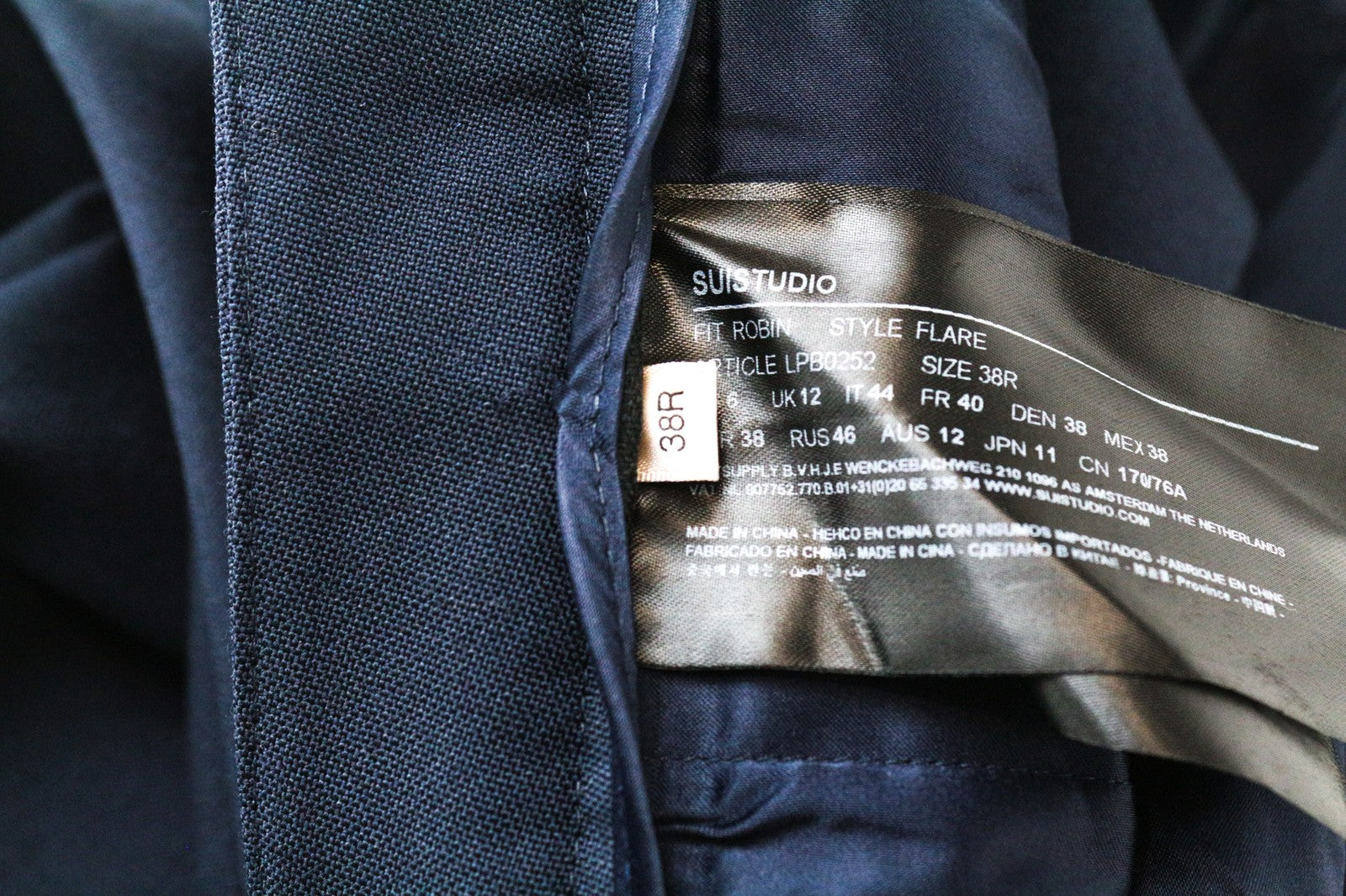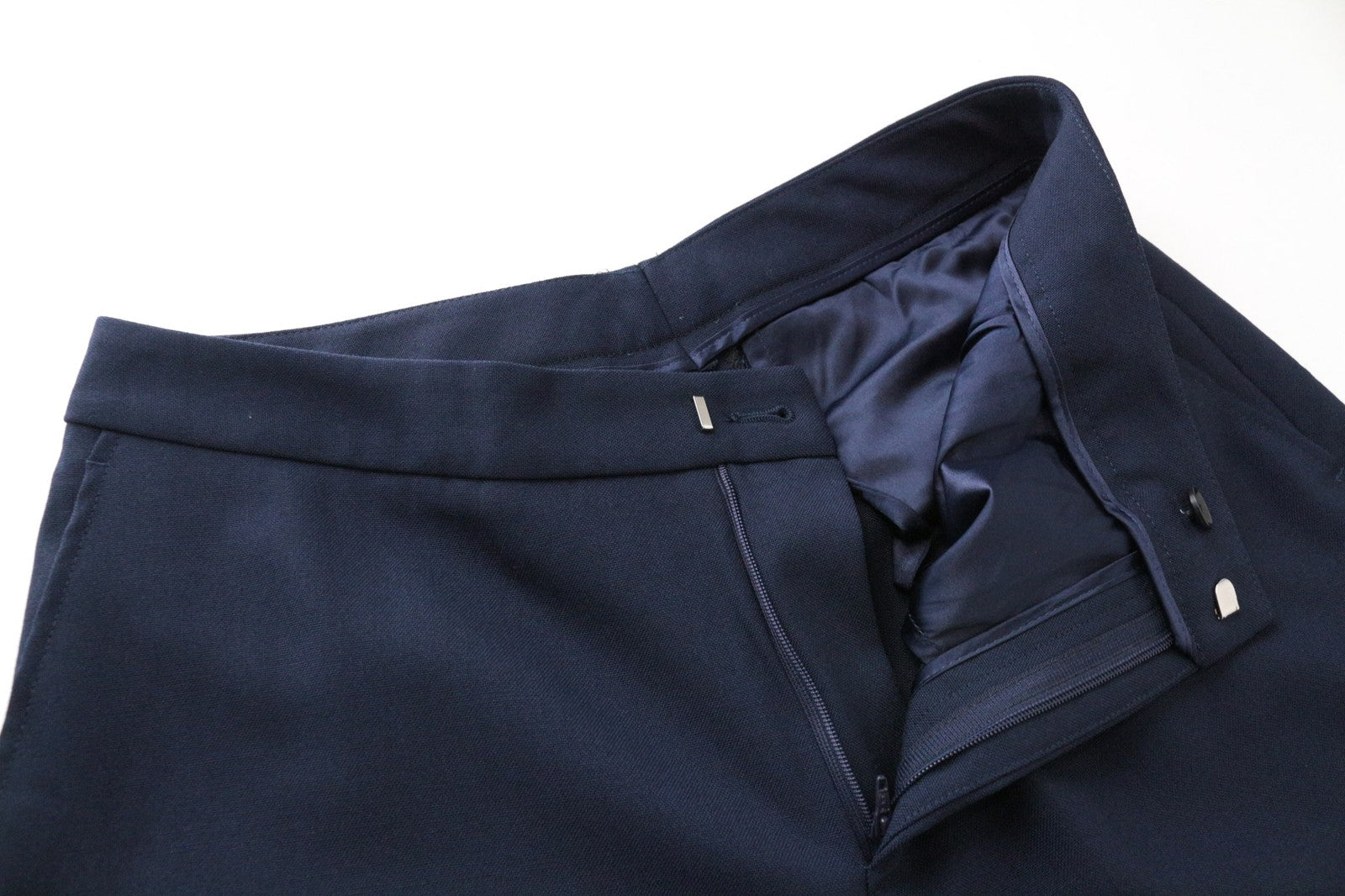SUISTUDIO Robin Women's Trousers UK12R Navy Slim Mohair Flare Flat Front