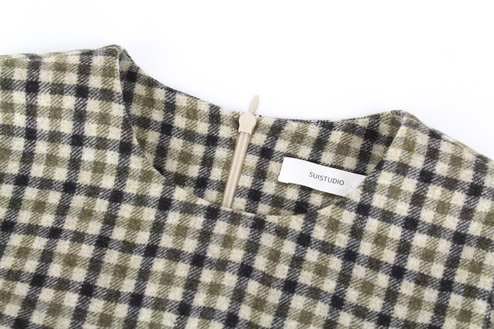 SUISTUDIO Sage Women's UK10 Checked Sleeveless Wool Brown Green T-Shirt