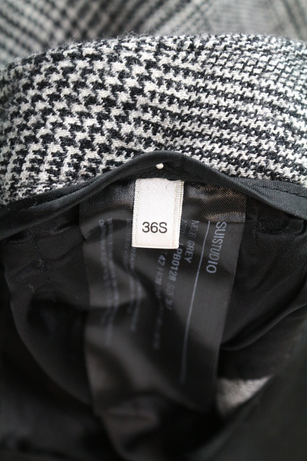 SUISTUDIO Women's Trousers UK10S Grey Glen Check Slim Wool Silk Linen Blend