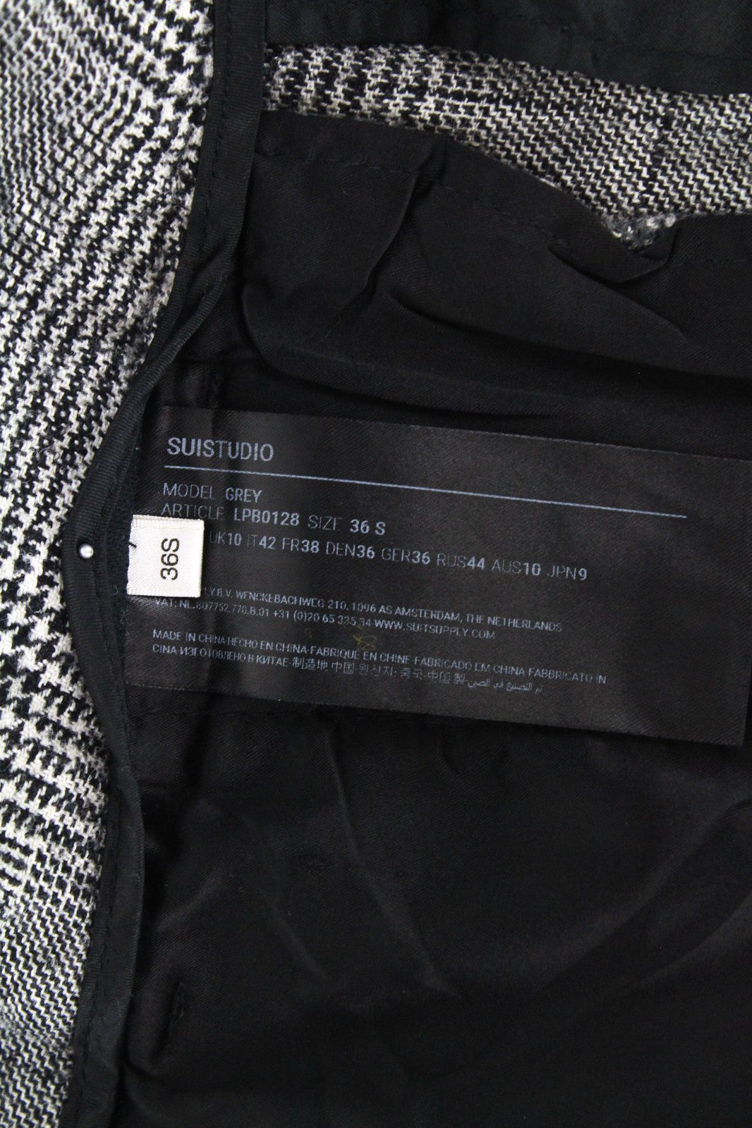 SUISTUDIO Women's UK10S Grey Checked Pleated Wool Silk Linen Blend Trousers