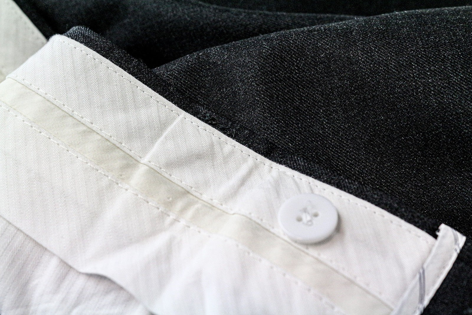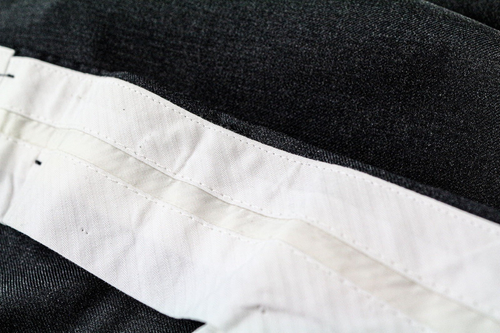 Used. Tailored waistline width and around the crotch area. Stained waistline. Torn off lining around the crotch area. Please see added photos.