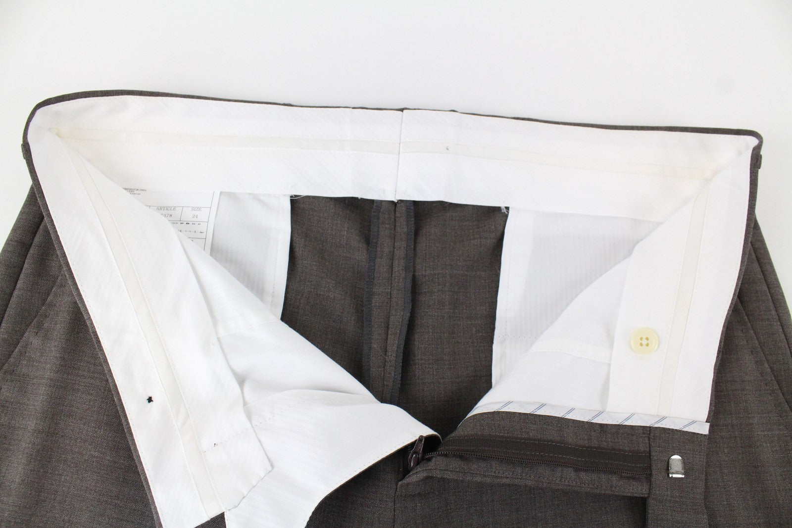 CONDITION: New with defects. Mended length around hems, mended waistline size. Stained front, around the left pocket. Please pay attention that the trousers are shorter than usual. Please see added photos.
