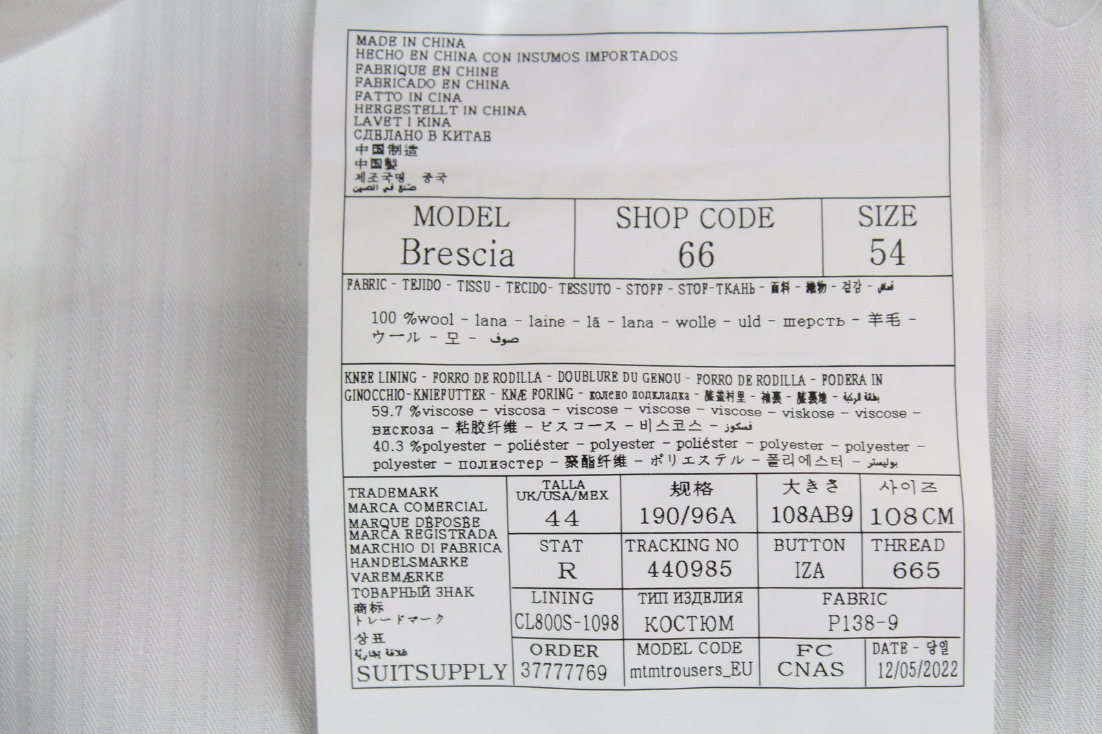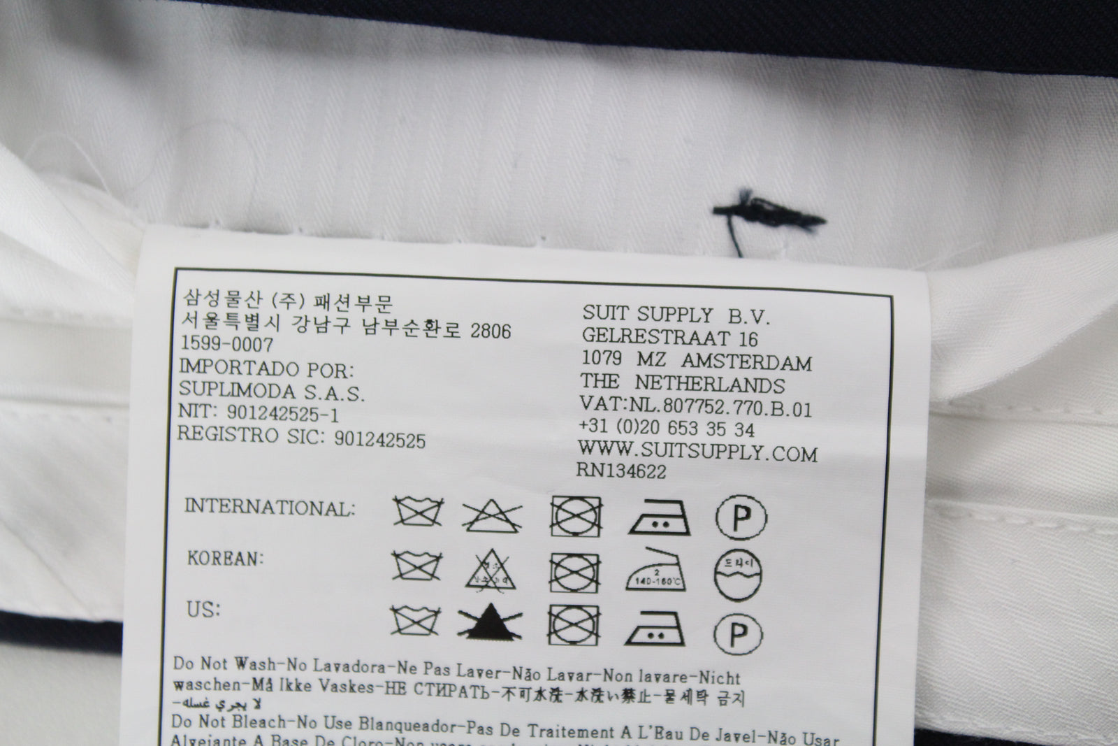 SUITSUPPLY Brescia Men's Navy Wool Trousers UK44R Flat-Front Classic Formal
