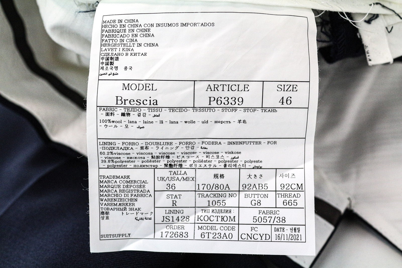 SUITSUPPLY Brescia Men's Pants UK36R Blue Wool Pleated Front Slim Formal Lined