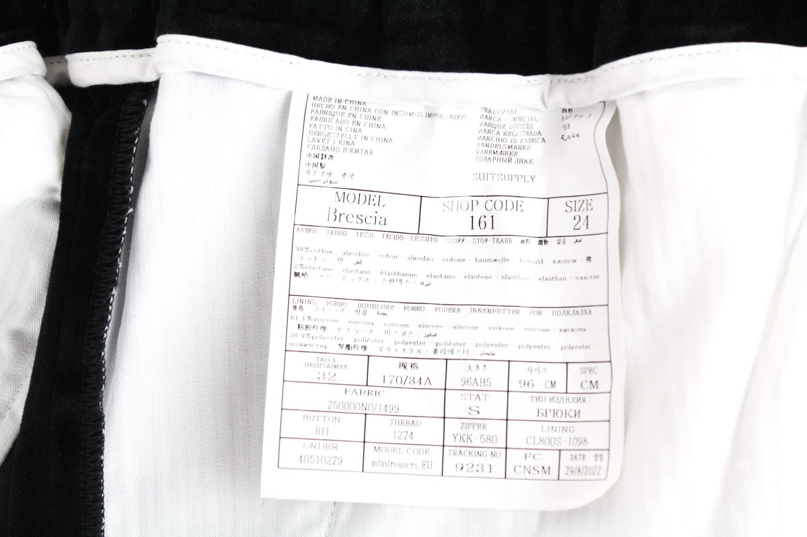 SUITSUPPLY Brescia Men's Trousers UK32S Black Velvet Formal Pleated Cotton