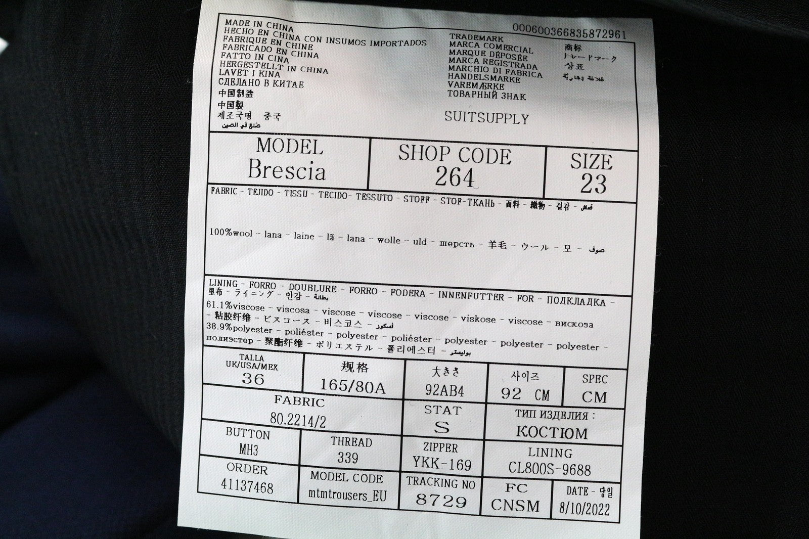 SUITSUPPLY Brescia Men's Trousers UK36S Blue Pure Wool Pleated Classic Front