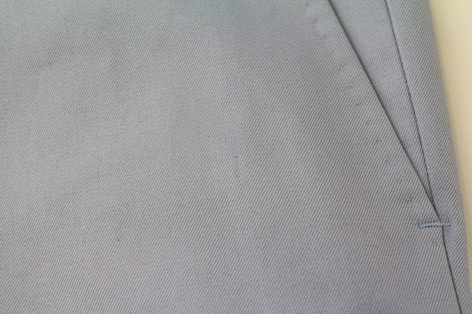 Pulled threads and an imprint on the left leg. Please see added photos.