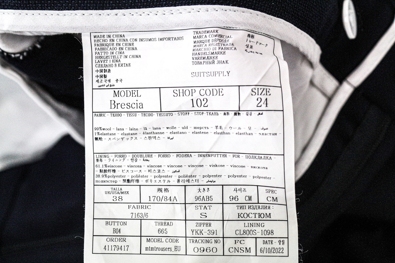 SUITSUPPLY Brescia Men's Trousers UK38S Navy Wool Stretch Slim Pleated Lined