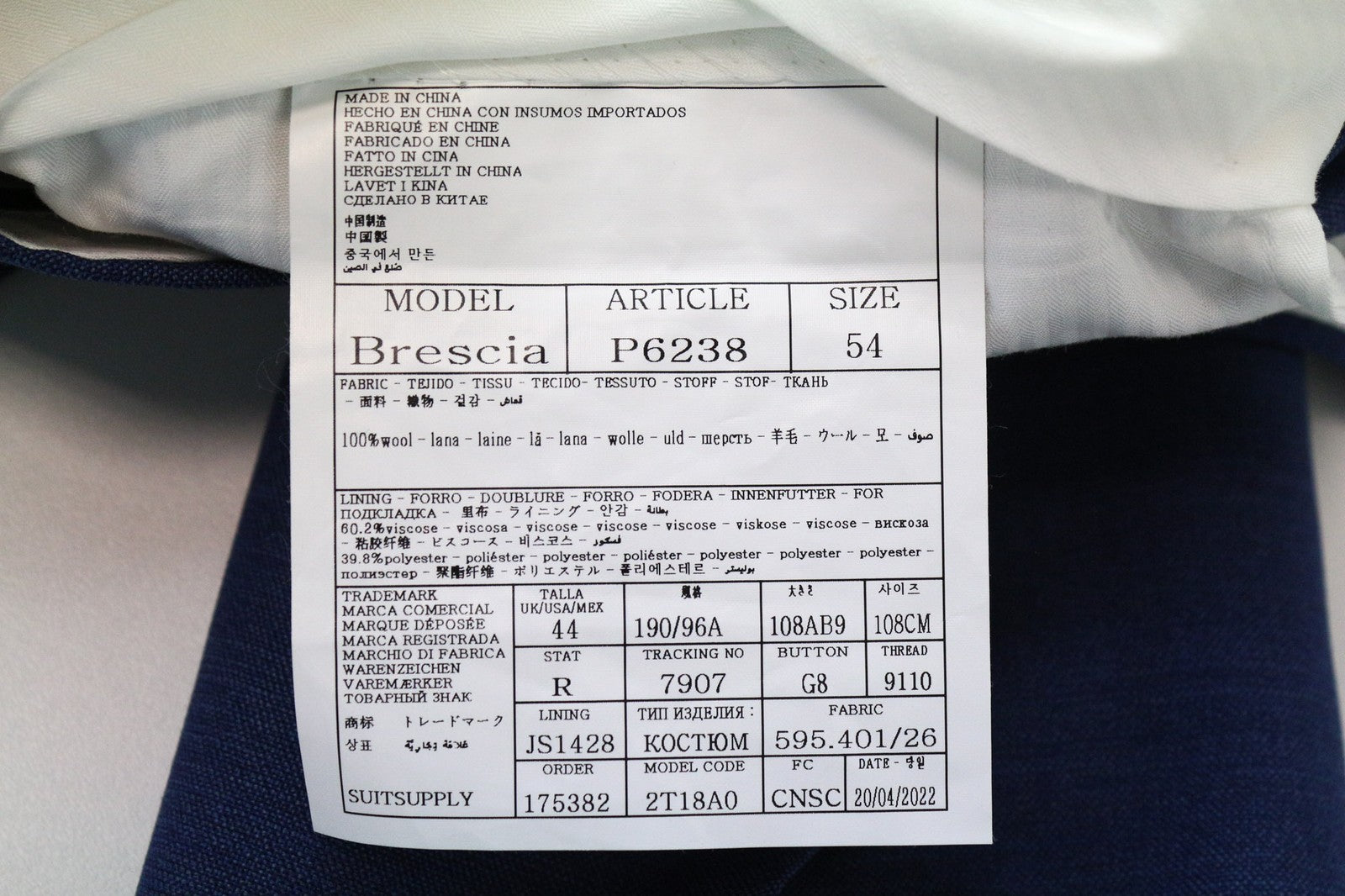 SUITSUPPLY Brescia Men's Trousers UK44R Blue Wool Slim Pleated Classic Fit