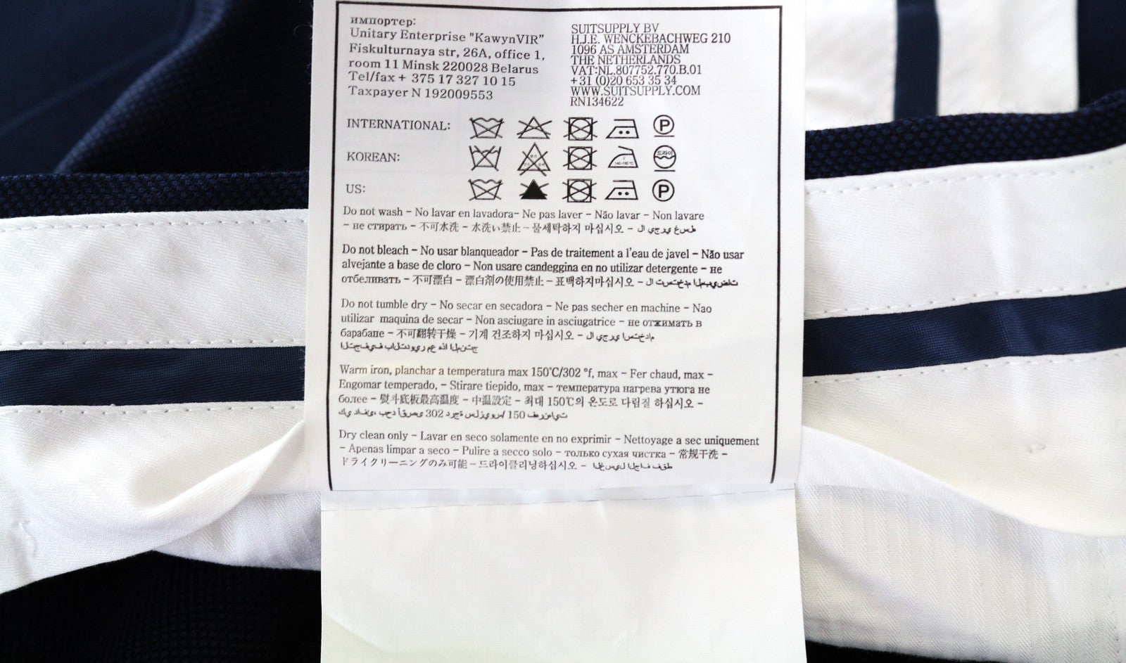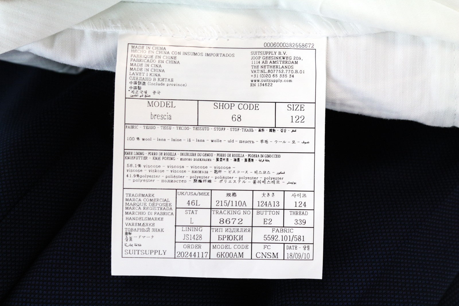 SUITSUPPLY Brescia UK46L Wool Trousers Men's Blue Lined Pleated Formal Pants