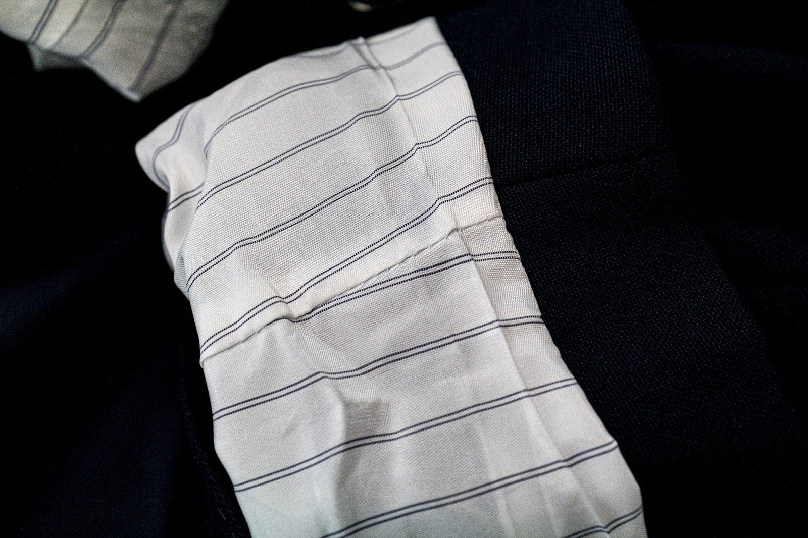 CONDITION: Stains inside cuffs and around armpit area. Please see added photos.
