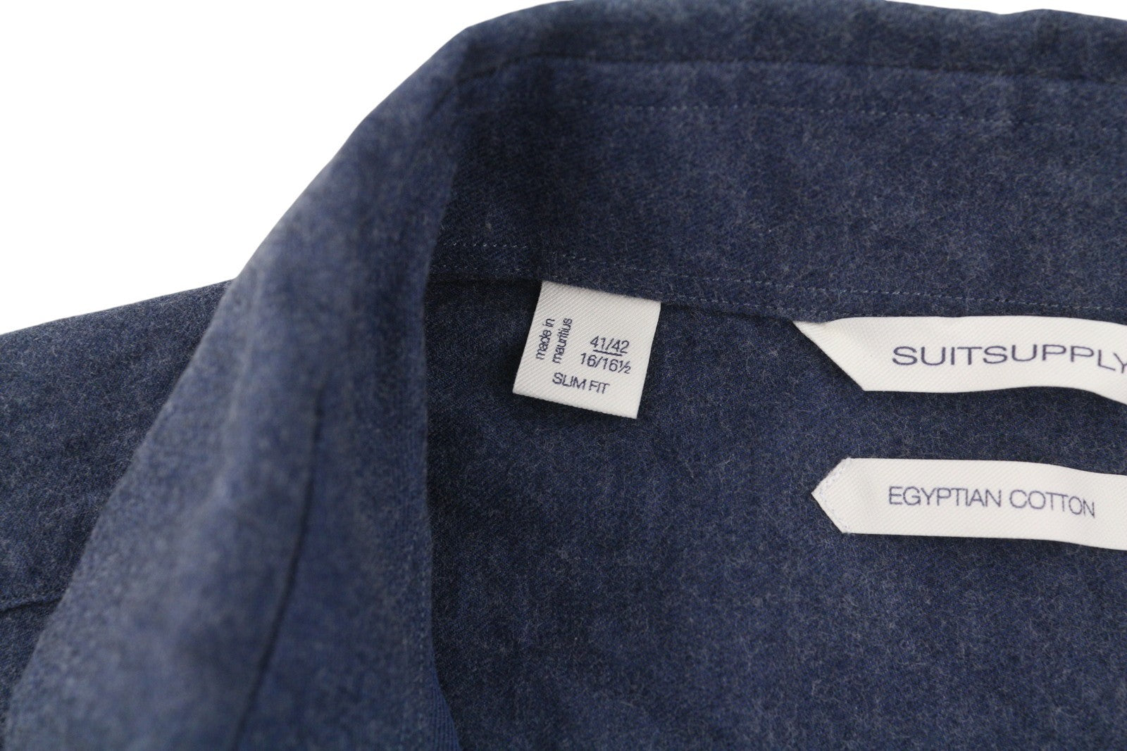 SUITSUPPLY Egyptian Cotton Men Shirt 41/42 16/16 1/2 Blue Flannel Slim Fit Polo