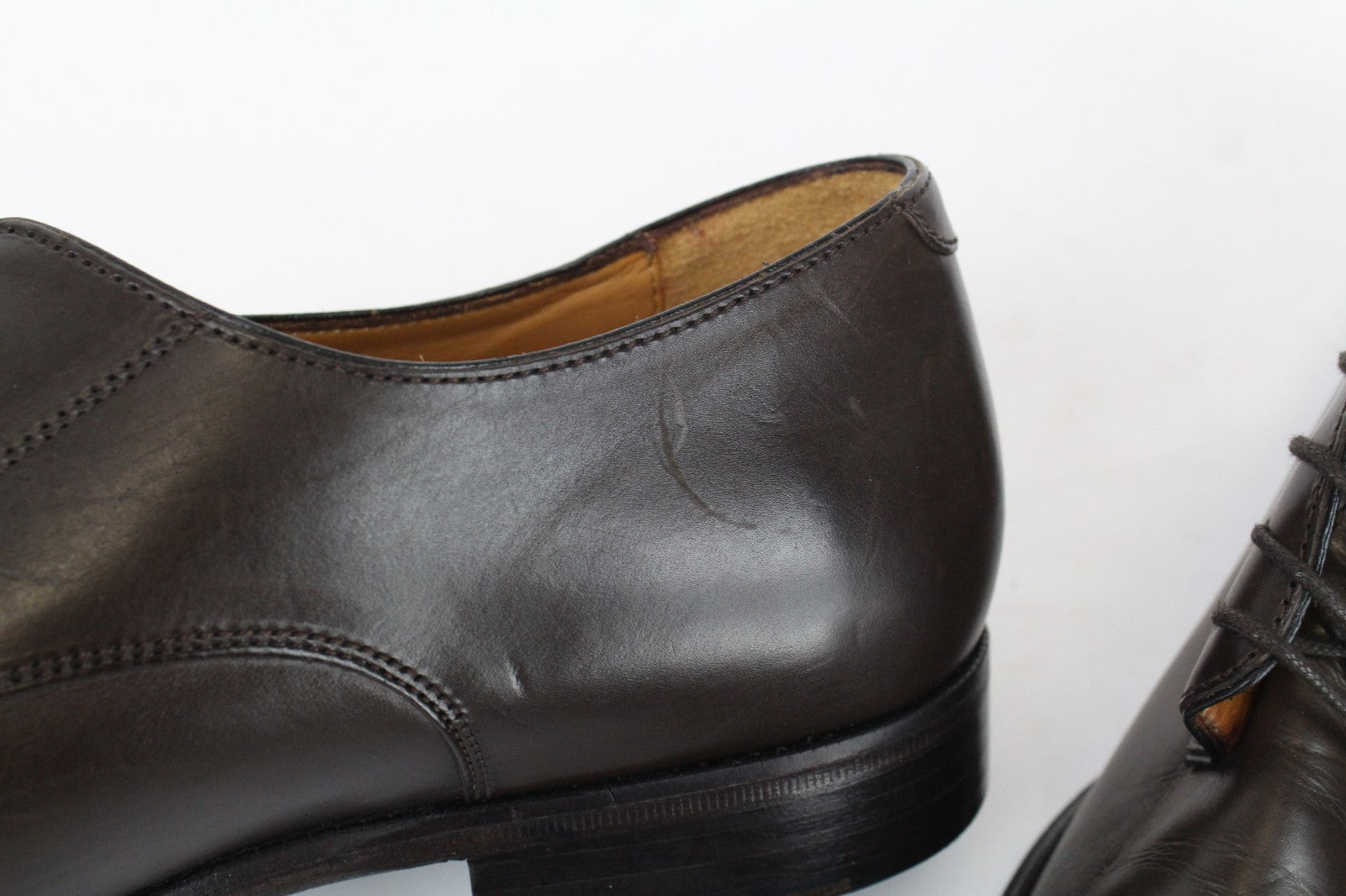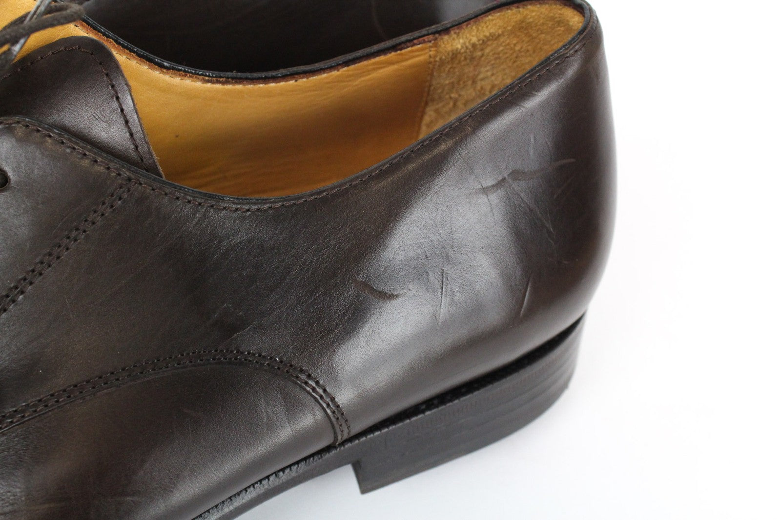 Used. Scratched soles. Wrinkled fronts, scratched sides. Please see added photos.