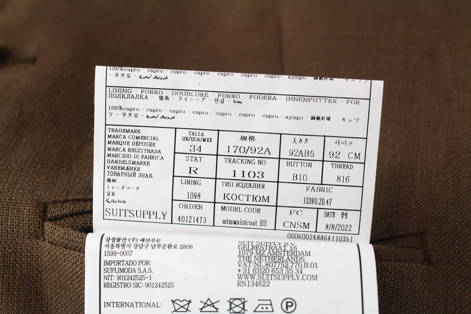 SUITSUPPLY Ferrara Men's UK34R Waistcoat Brown Pure Linen Single-Breasted Formal