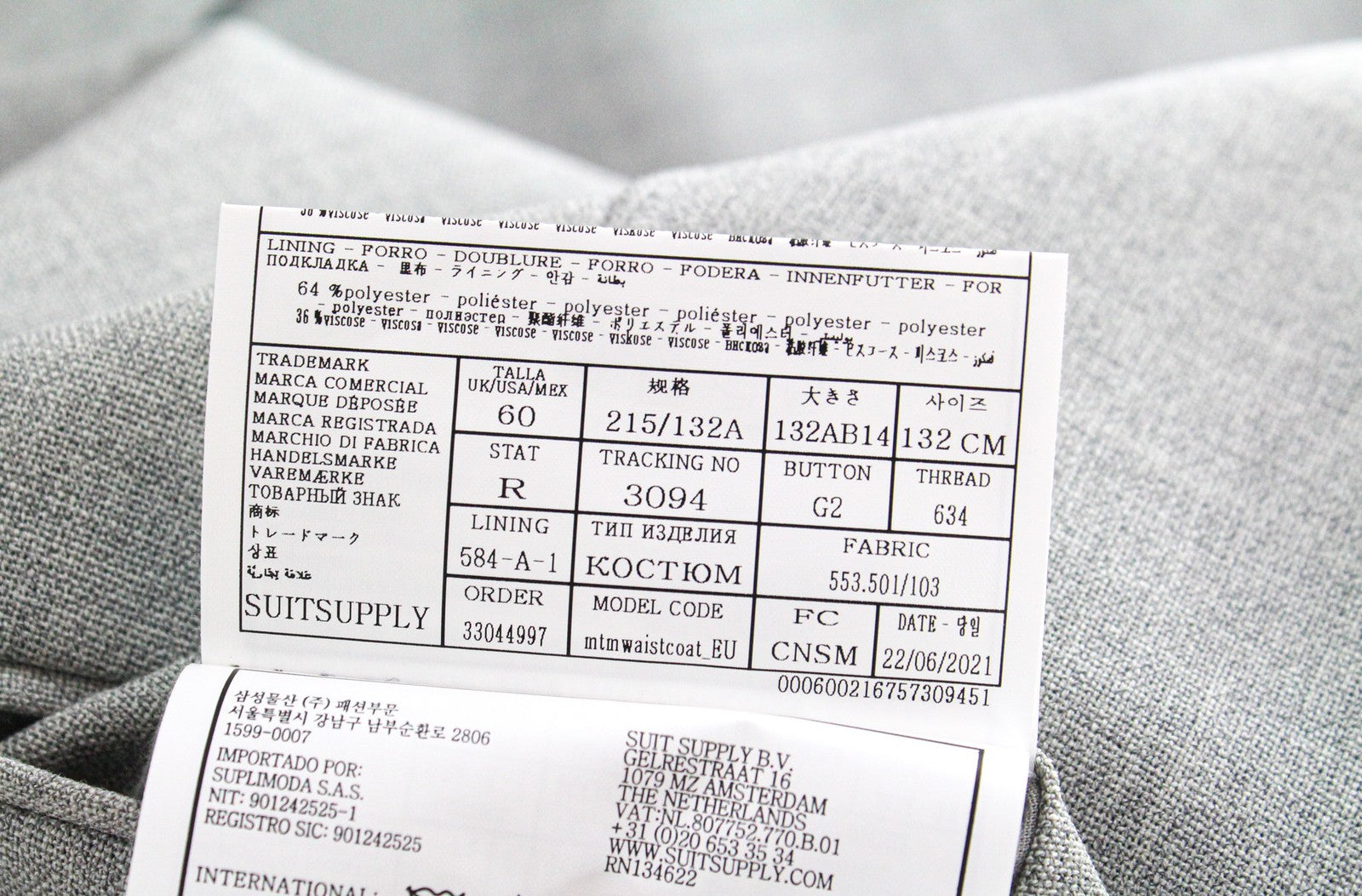 SUITSUPPLY Ferrara Men's Waistcoat UK60R Grey Wool Slim Fit Peak Lapel Vest