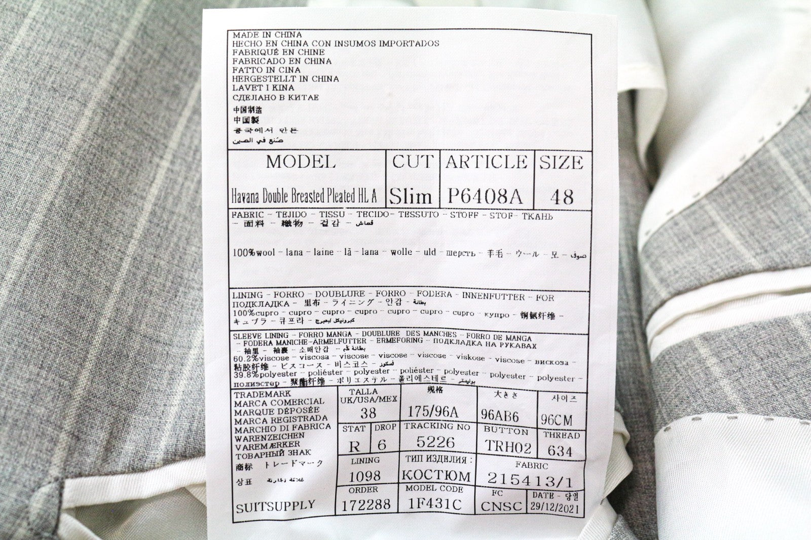 SUITSUPPLY Havana Double Breasted Men's Suit UK38R Grey Striped Wool S130 Slim