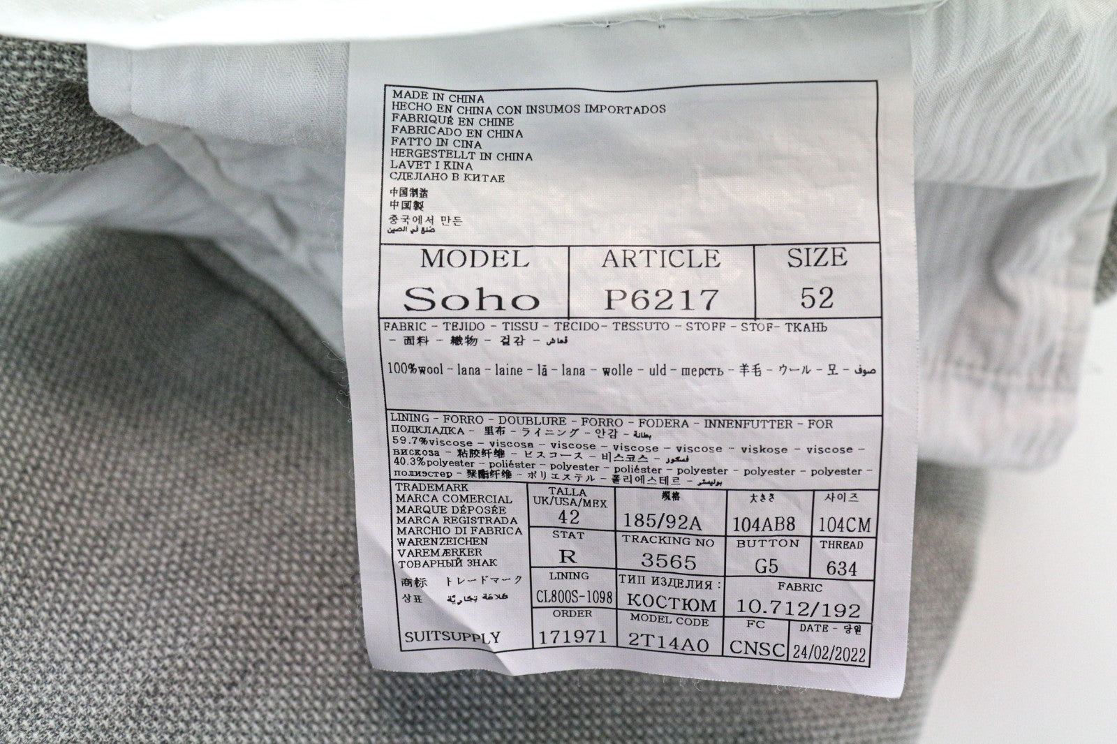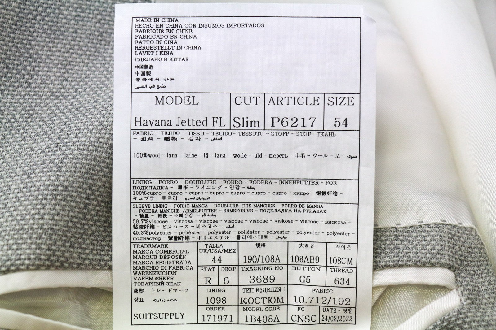SUITSUPPLY Havana Jetted Men's Suit UK44R Grey Melange Pure Wool Slim 2-Piece