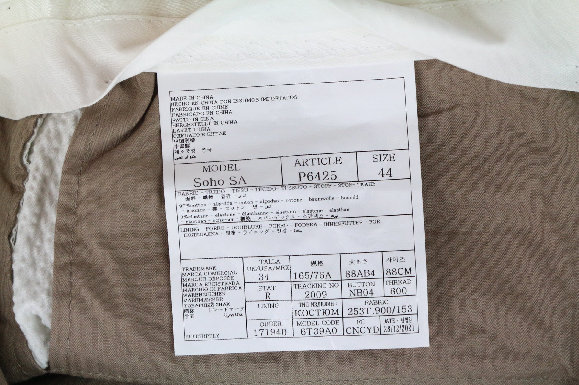 SUITSUPPLY Havana Men's Suit UK34R White Slim Double-Breasted Cotton Stretch 2Pc