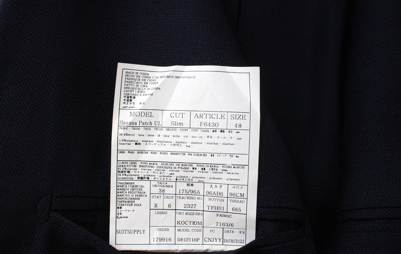 SUITSUPPLY Havana Men's Suit UK38R Blue Wool Stretch Slim 2Pc Formal Single Row